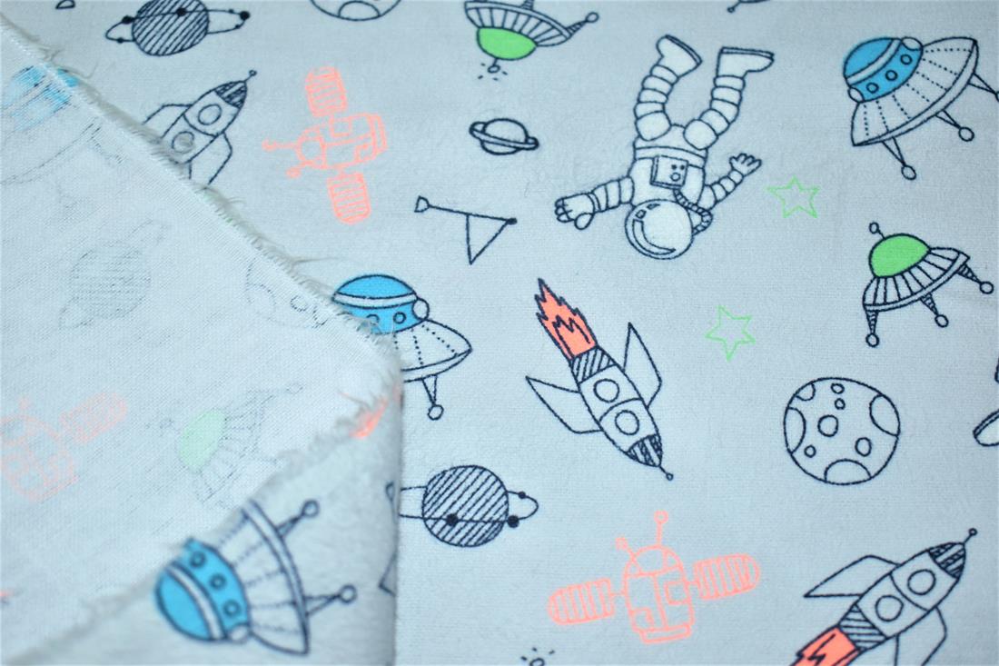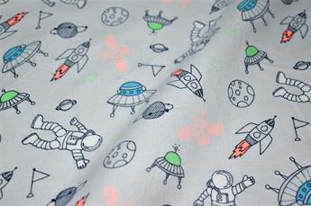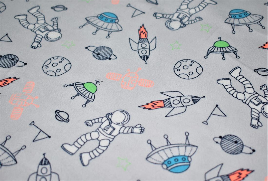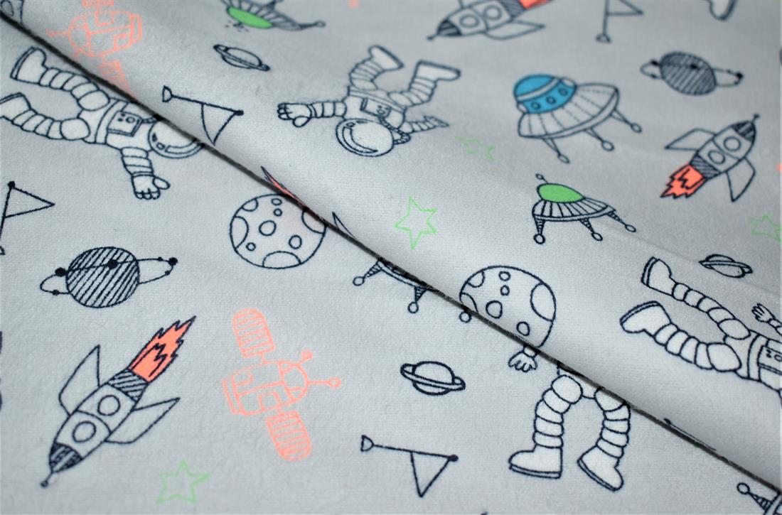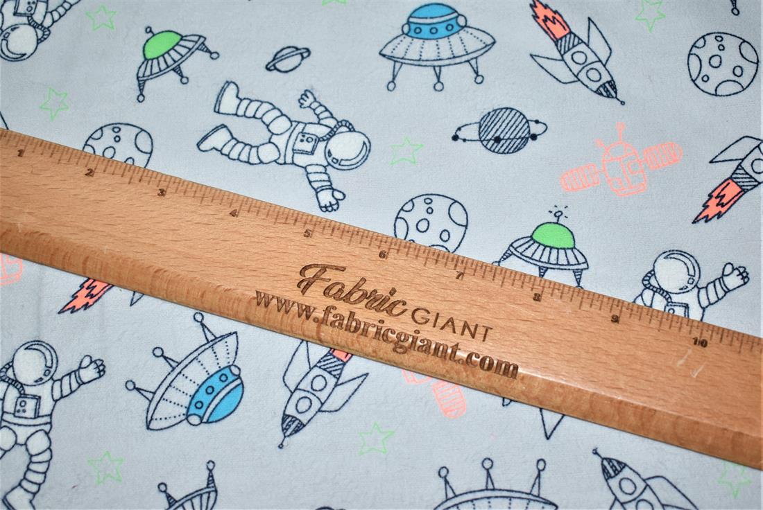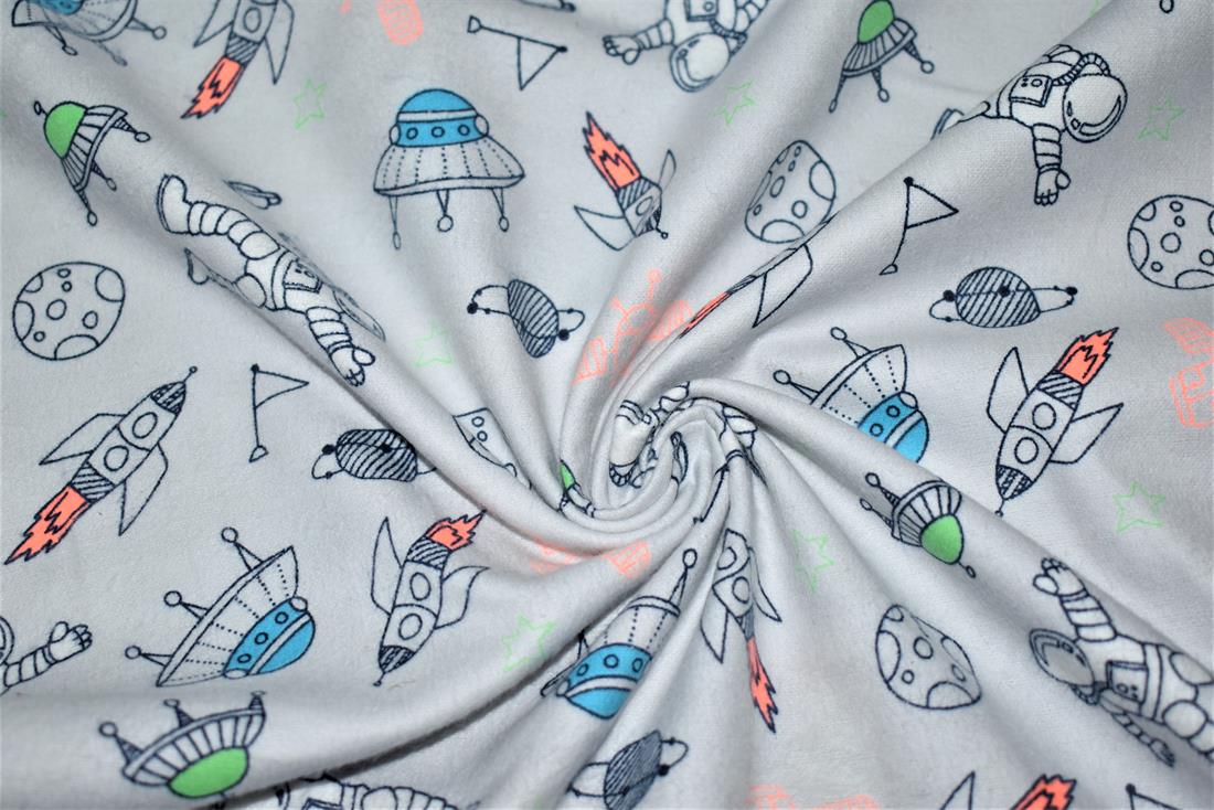 Space - Printed Premium Soft Brushed Flannel Winceyette 100% Cotton Fabric High Quality.