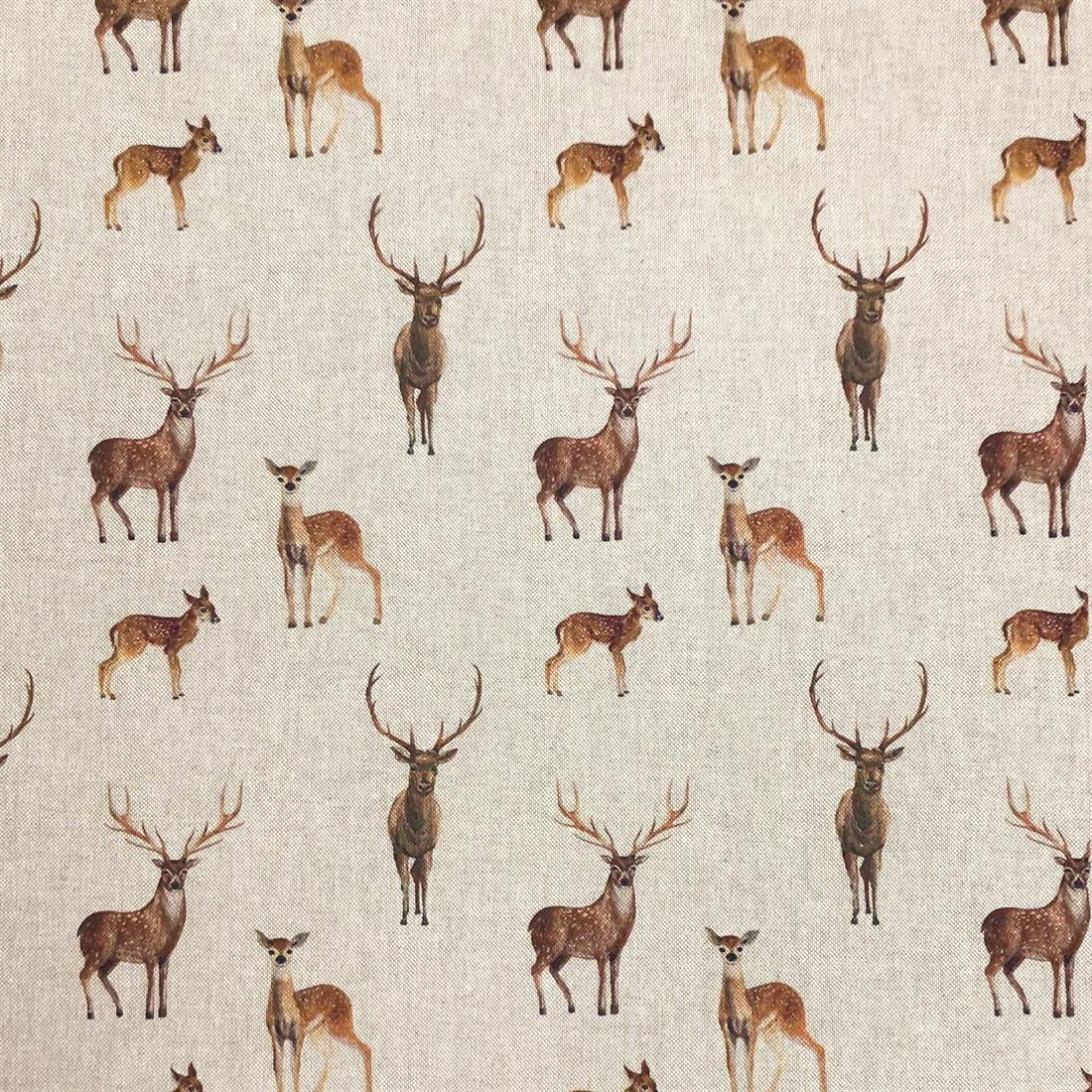 Stags and Deers- Printed Digital Canvas Fabric, Cotton Rich Linen Look, Cat All Over, 80% Cotton and 20% Polyester, 139cm Wide, Weight: 200gsm This fabric is perfect for cushions, curtains, trousers, skirts, shorts, and home furnishings. Colours may slightly vary due to the lighting during the photo shooting or the monitor's display.Fabric is cut from the roll and multiple purchases will be cut in one continuous piece. Wash at 30 Degrees