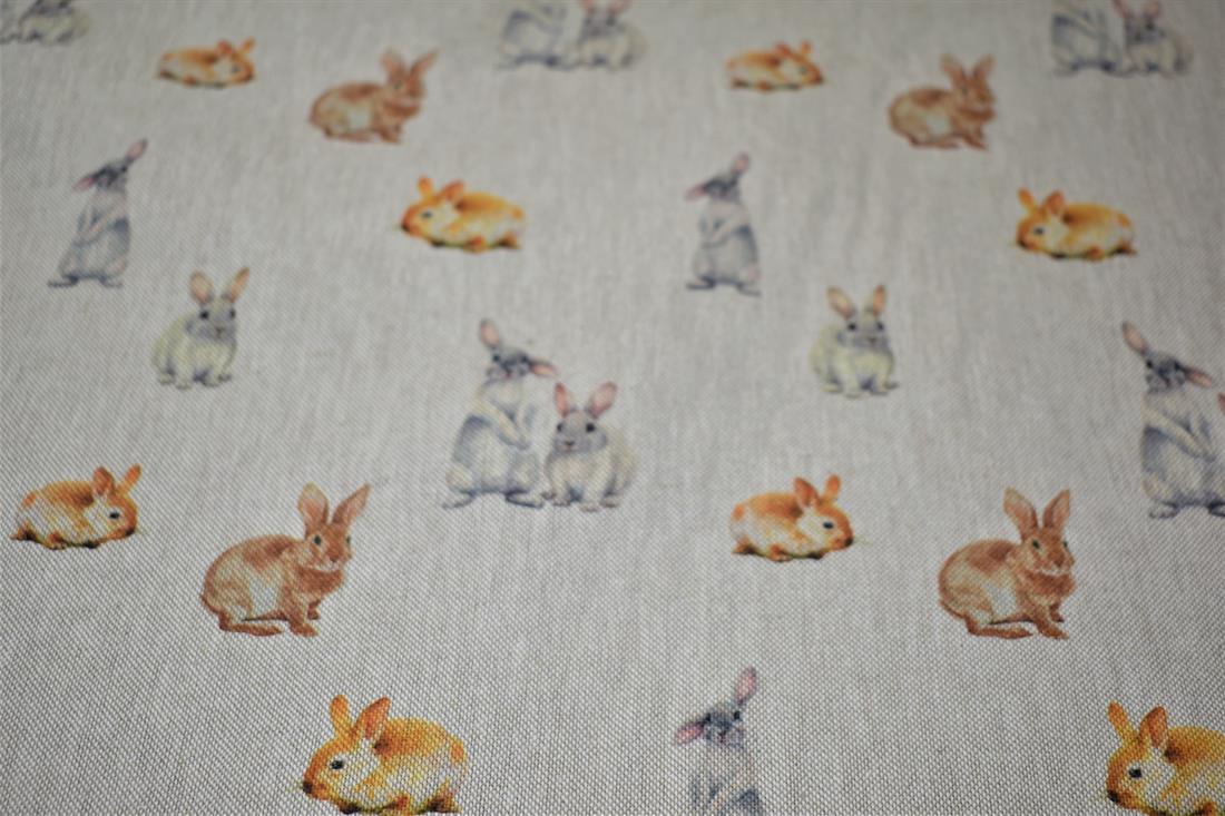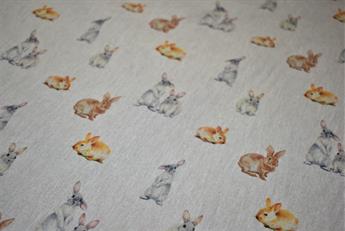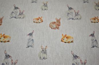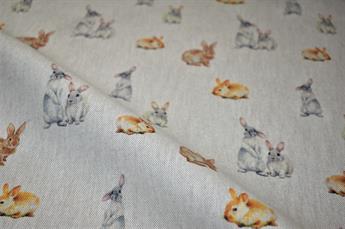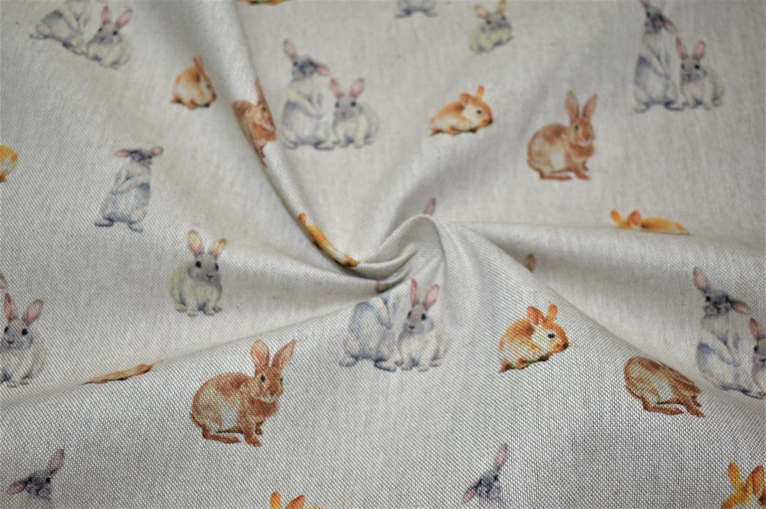 Bunny Rabbits- Printed Digital Canvas Fabric, Cotton Rich Linen Look, Cat All Over, 80% Cotton and 20% Polyester