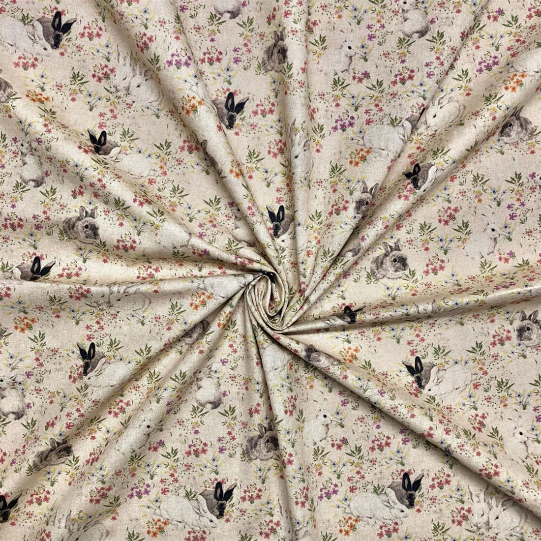 Rabbits and Hares Cotton Rich Linen Look, Cat All Over, 80% Cotton and 20% Polyester, 139cm Wide,