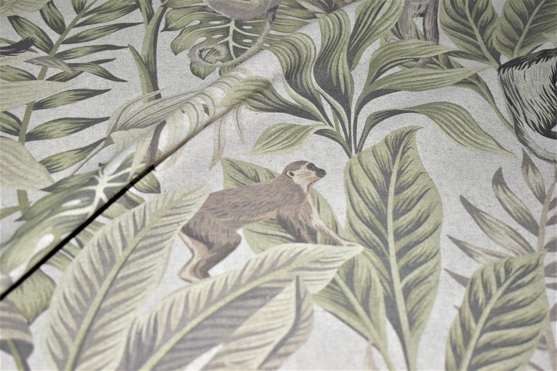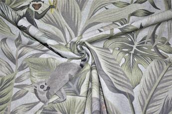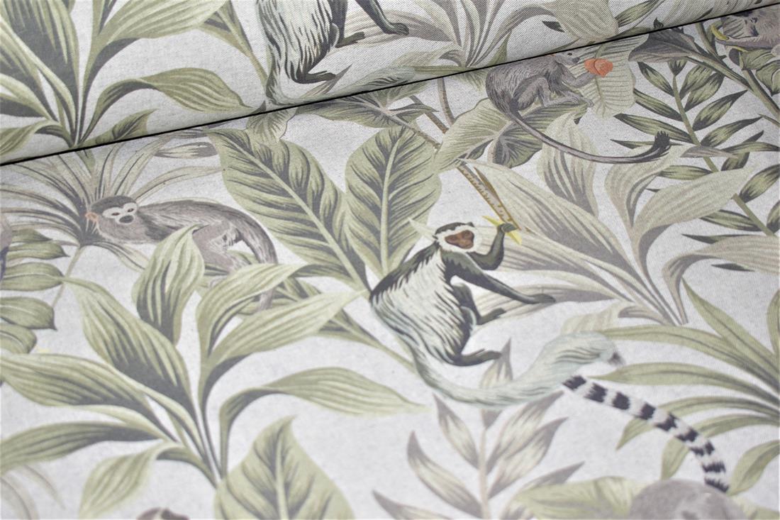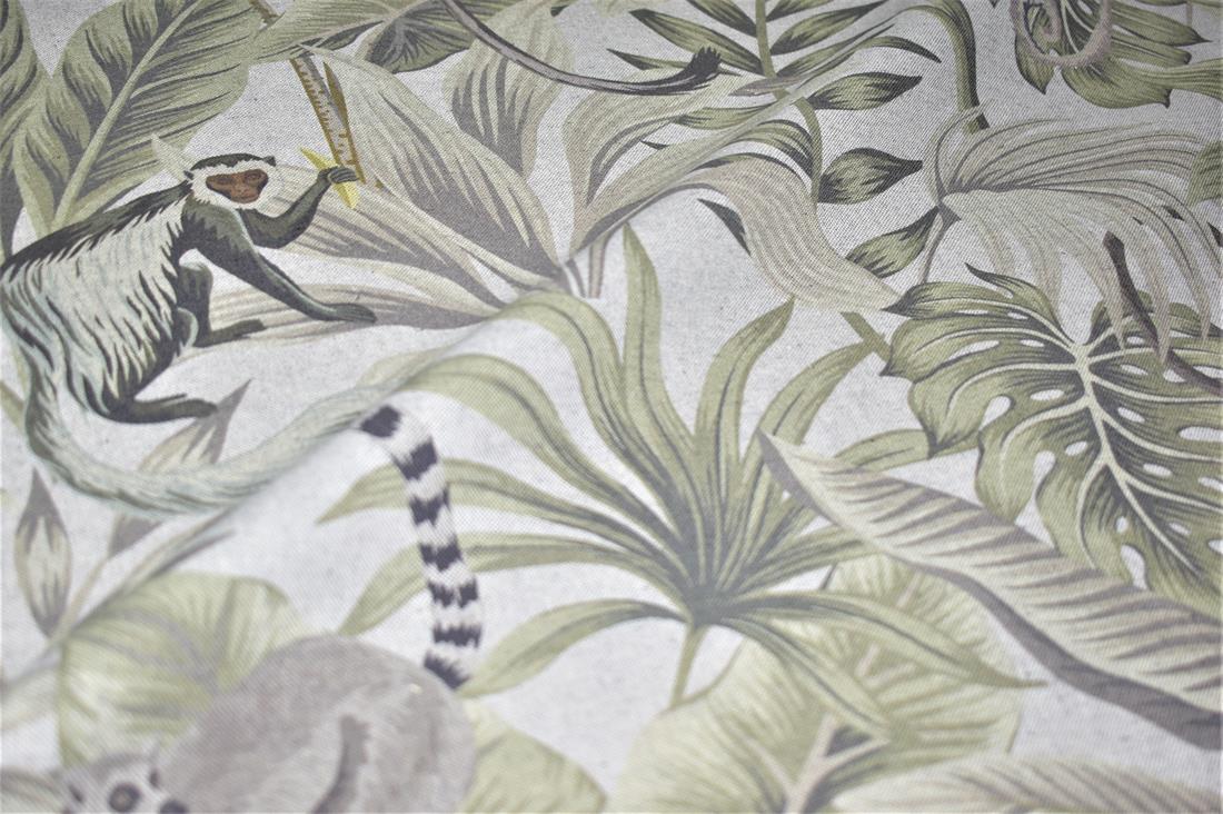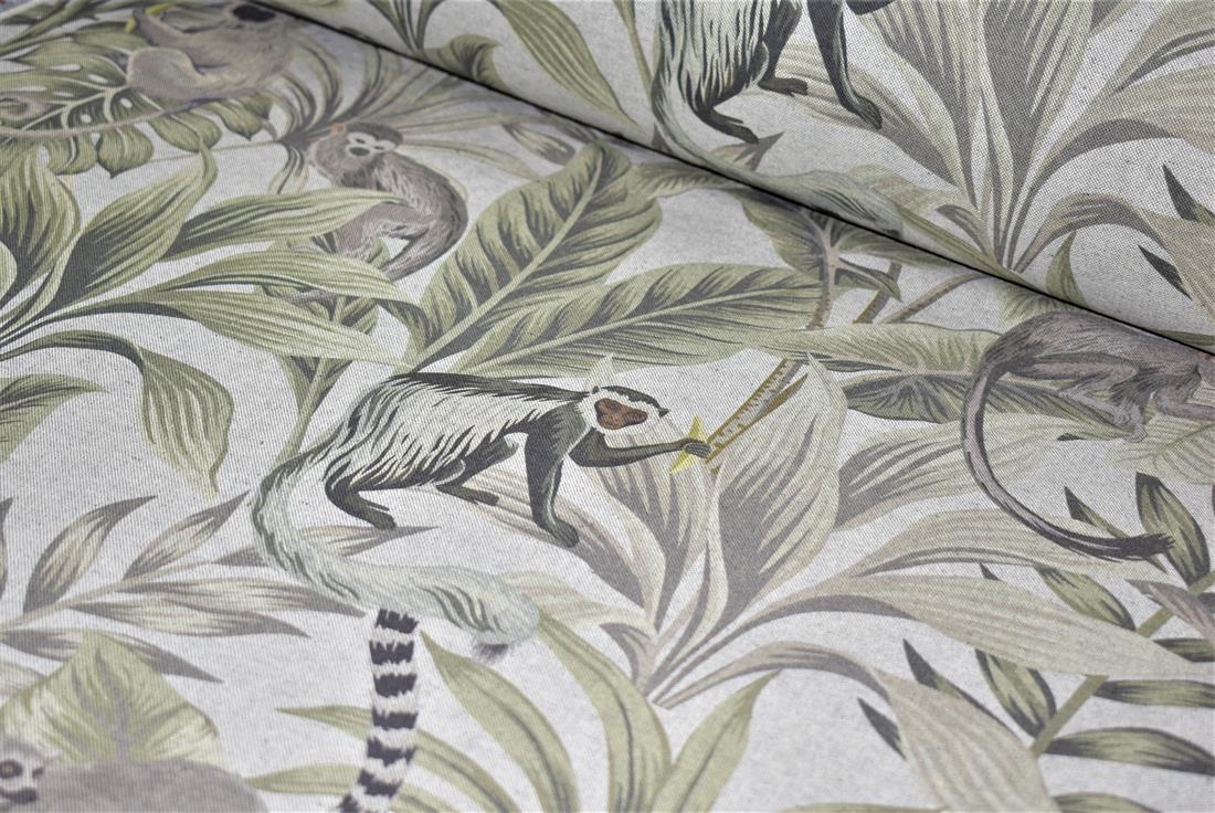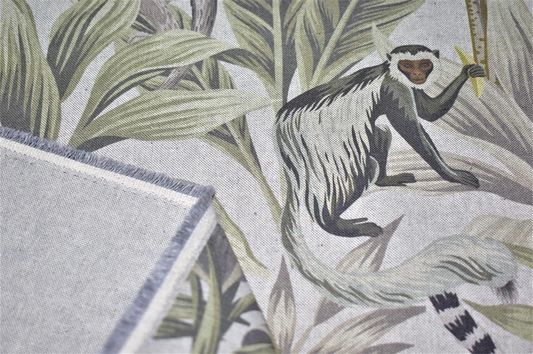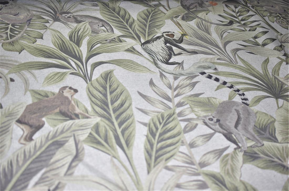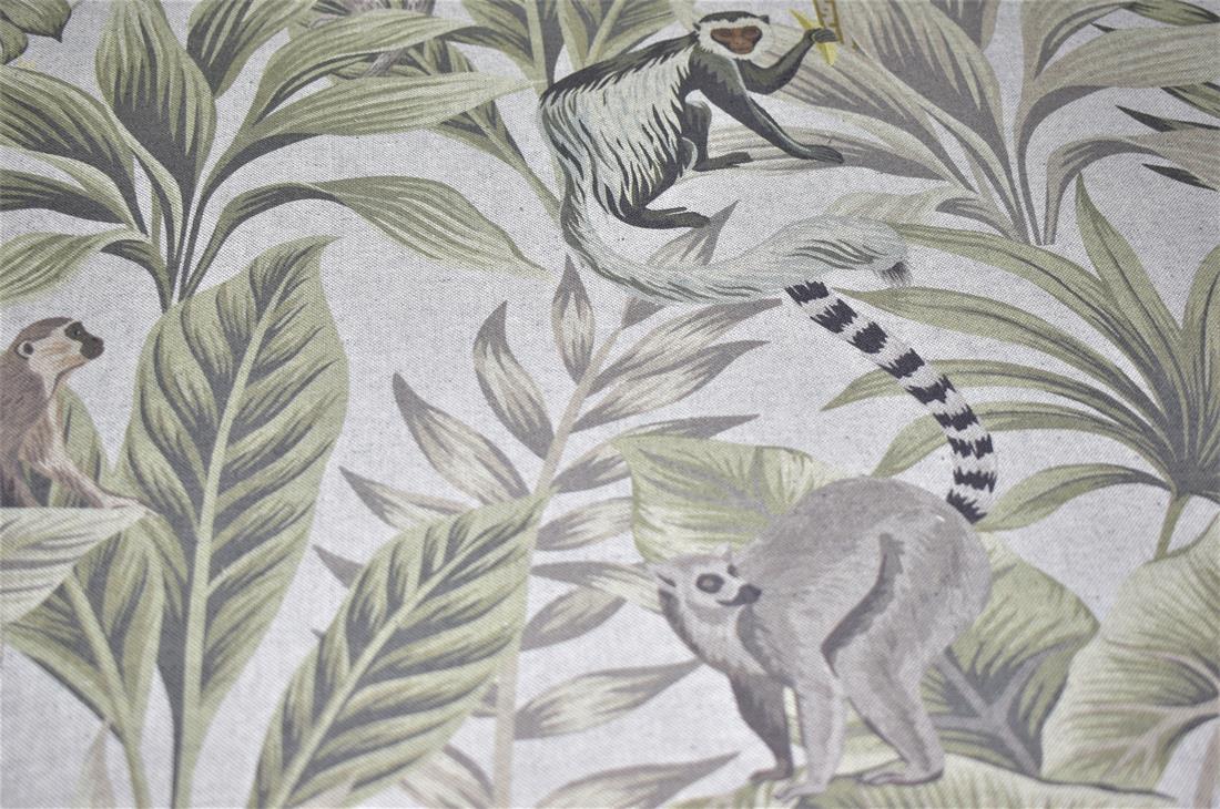 Linen Madagascar - Printed Digital Canvas Fabric, Cotton Rich Linen Look, Cat All Over
