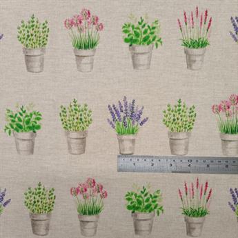 Flower pots - Printed Digital Canvas Fabric, Cotton Rich Linen Look, Cat All Over, 80% Cotton and 20% Polyester, 139cm Wide, Weight: 200gsm This fabric is perfect for cushions, curtains, trousers, skirts, shorts, and home furnishings. Colours may slightly vary due to the lighting during the photo shooting or the monitor's display.Fabric is cut from the roll and multiple purchases will be cut in one continuous piece. Wash at 30 Degrees