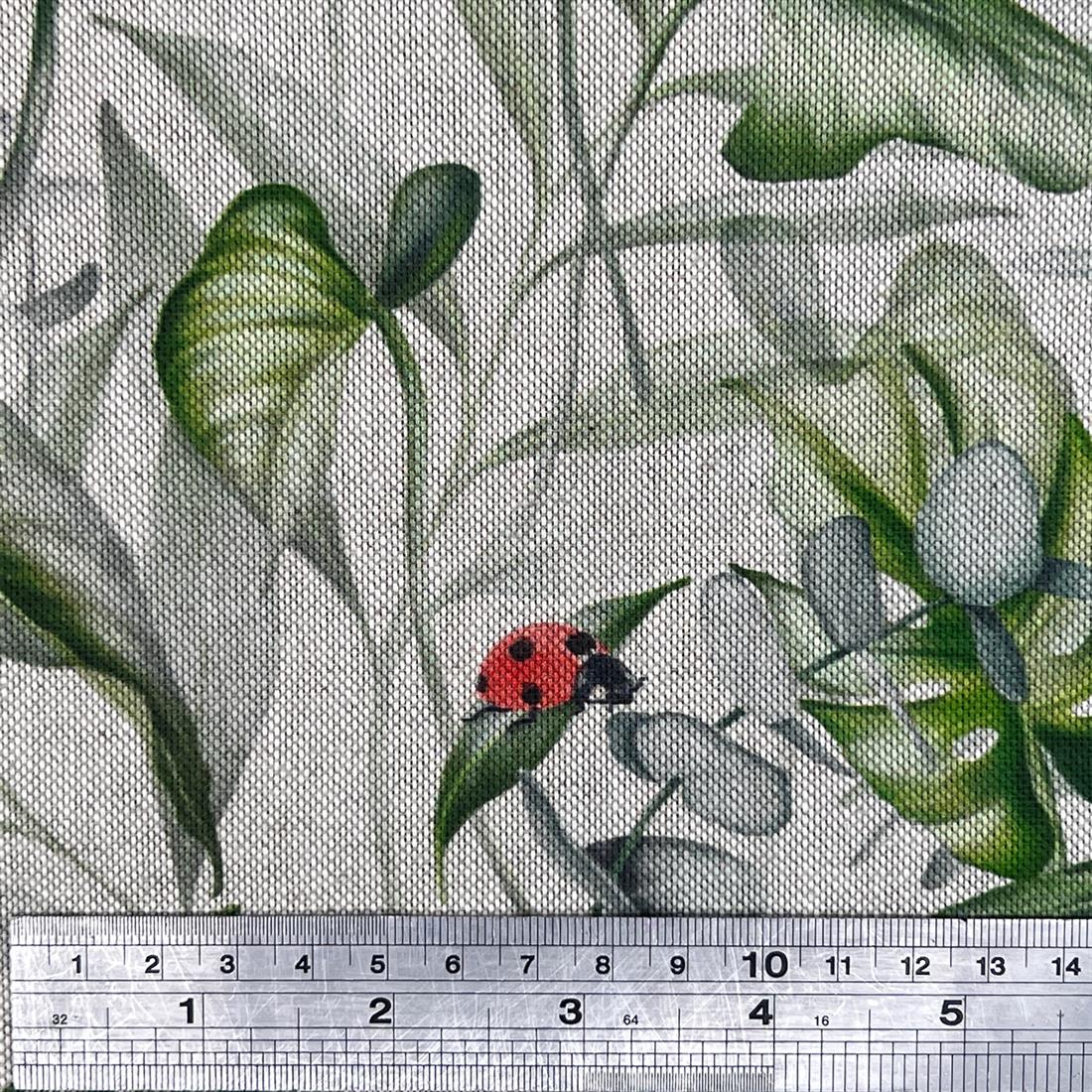 Lady Bird Monstera- Printed Digital Canvas Fabric, Cotton Rich Linen Look, Cat All Over, 80% Cotton and 20% Polyester, 139cm Wide, Weight: 200gsm This fabric is perfect for cushions, curtains, trousers, skirts, shorts, and home furnishings. Colours may slightly vary due to the lighting during the photo shooting or the monitor's display.Fabric is cut from the roll and multiple purchases will be cut in one continuous piece. Wash at 30 Degrees