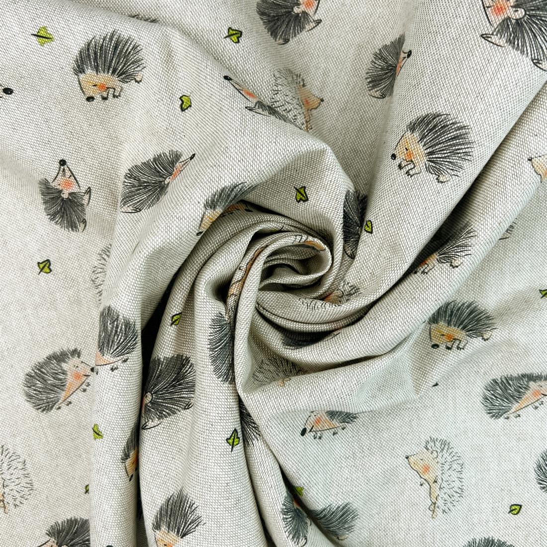 Little Hedgehogs- Printed Digital Canvas Fabric, Cotton Rich Linen Look, Cat All Over, 80% Cotton and 20% Polyester, 139cm Wide, Weight: 200gsm This fabric is perfect for cushions, curtains, trousers, skirts, shorts, and home furnishings. Colours may slightly vary due to the lighting during the photo shooting or the monitor's display.Fabric is cut from the roll and multiple purchases will be cut in one continuous piece. Wash at 30 Degrees