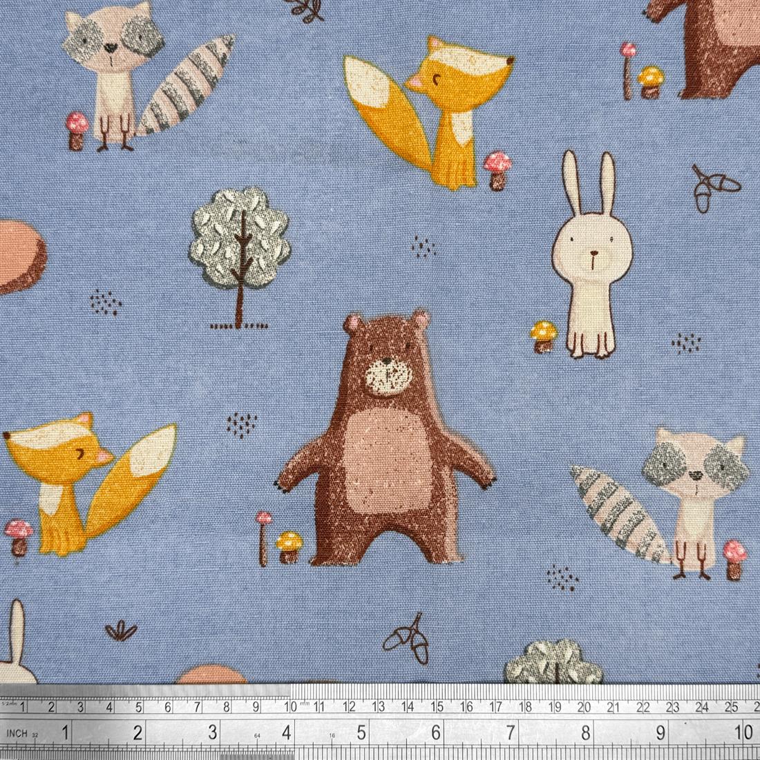 Forest Friends - Printed Digital Canvas Fabric, Cotton Rich Linen Look