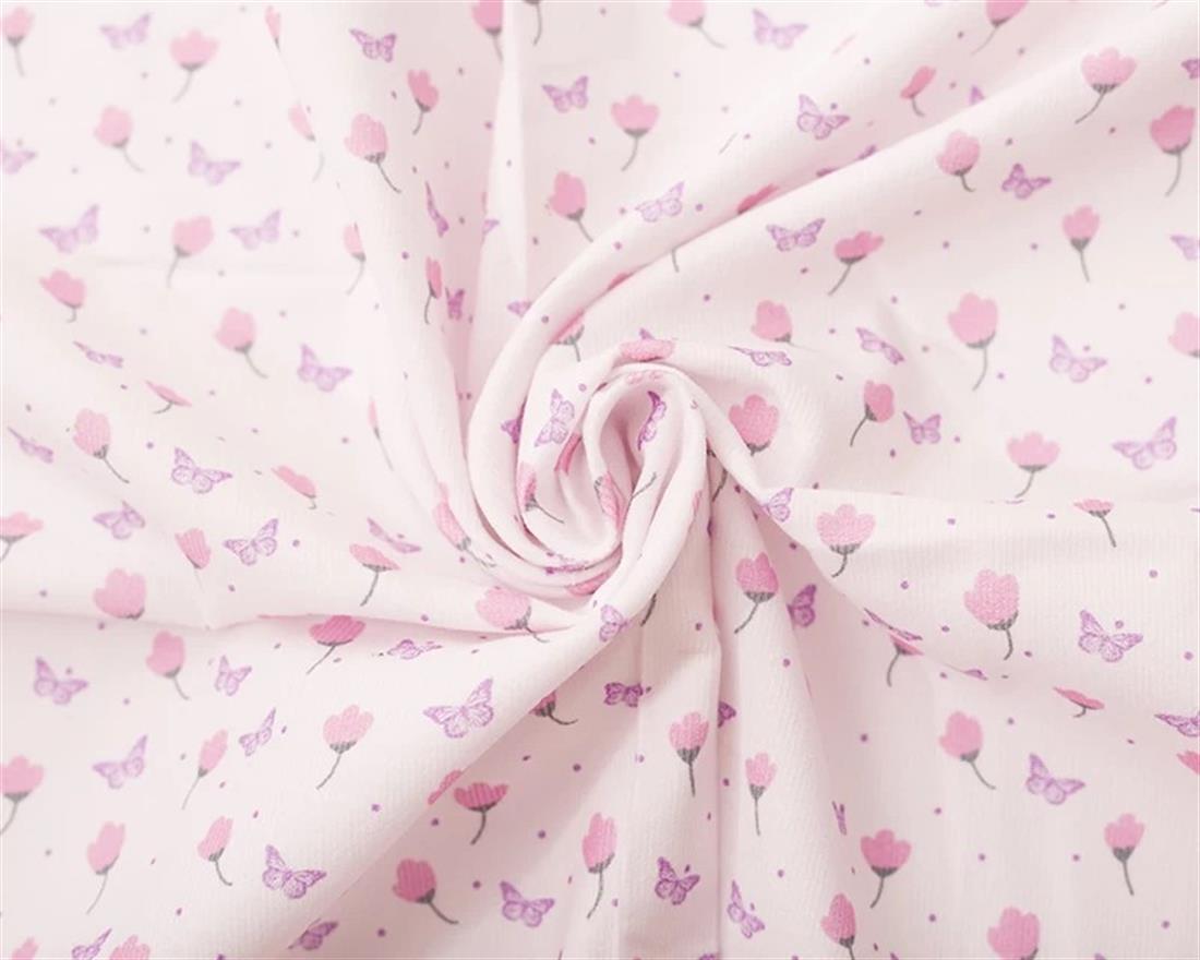 Delicate and dreamy! This beautiful needlecord from Little Johnny features graceful butterflies fluttering across a soft pink backdrop. Ideal for feminine creations, nature-inspired projects, or whimsical kids’ fashion, this print brings a touch of charm and elegance to every stitch.