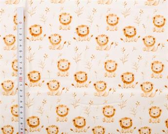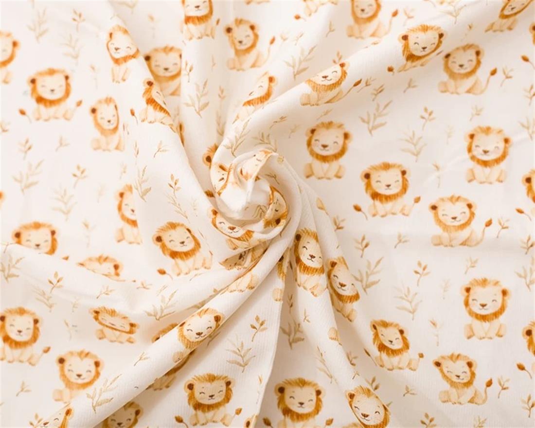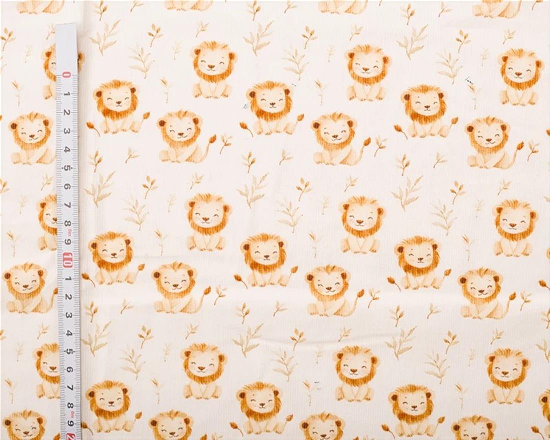 Add a playful twist to your next sewing project with this charming lion print from Little Johnny. Set on a soft cream background, the digitally printed design features adorable illustrated lions—perfect for kids’ clothing, nursery décor, or fun statement pieces. The fine needlecord texture gives it a lovely feel and an extra touch of quality.