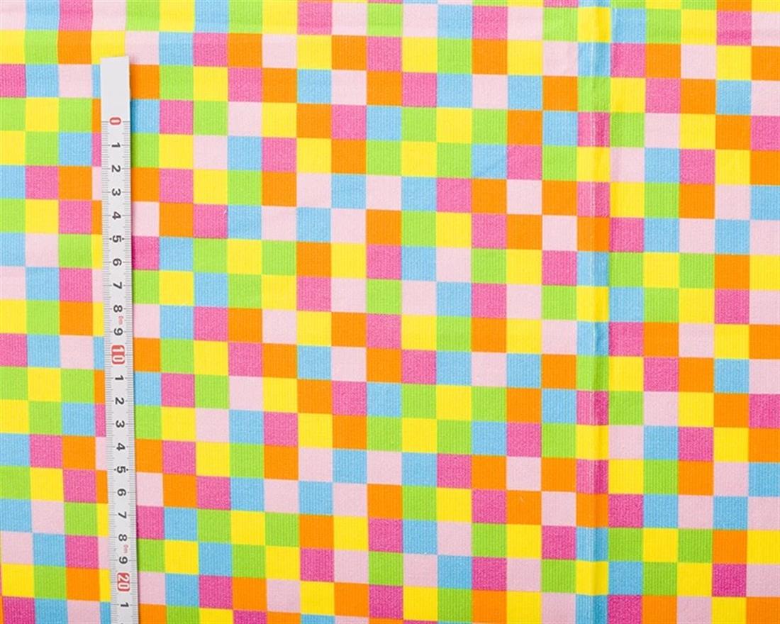 Add a vibrant splash of color to your creations with this Little Johnny needlecord fabric in a multi-colored rainbow check pattern. Made from 100% cotton, this durable needlecord offers a comfortable texture with its classic ribbed finish, making it ideal for stylish and cozy garments.