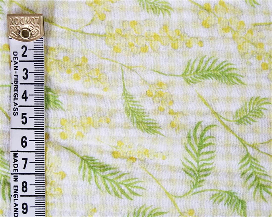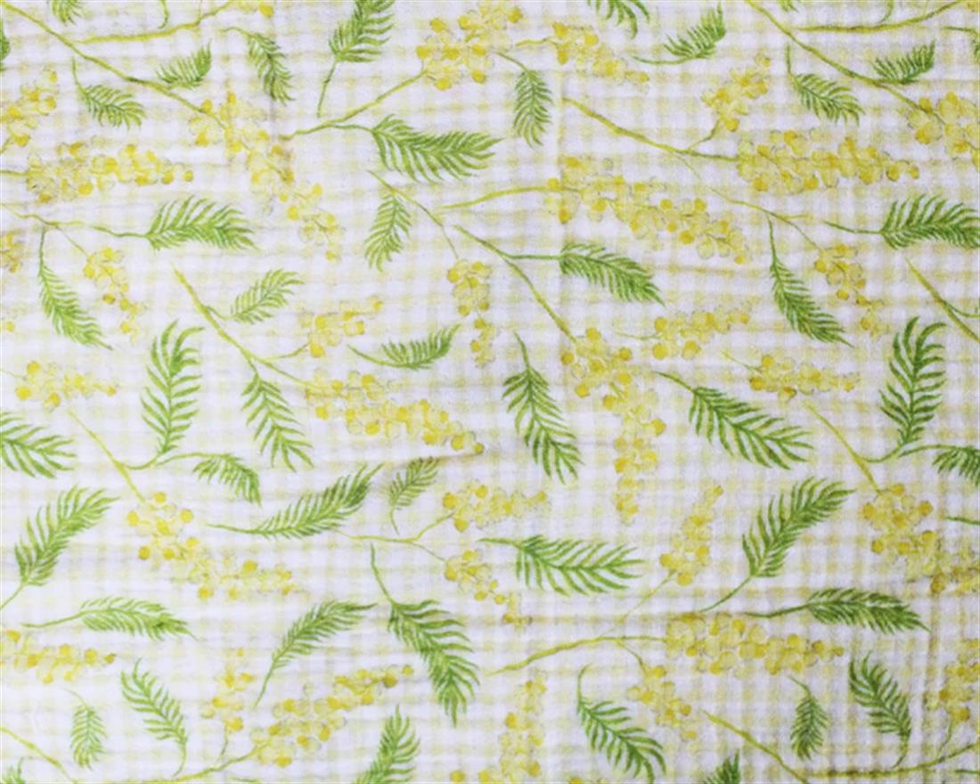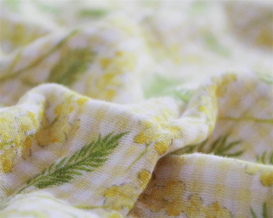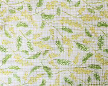 Double gauze is a fabric that consists of two layers of fine open woven cotton. They are attached with tiny stab stitches at regular intervals, usually every centimetre, in a grid pattern, though this is barely visible. It is incredibly soft to the touch and can be a tiny bit transparent.