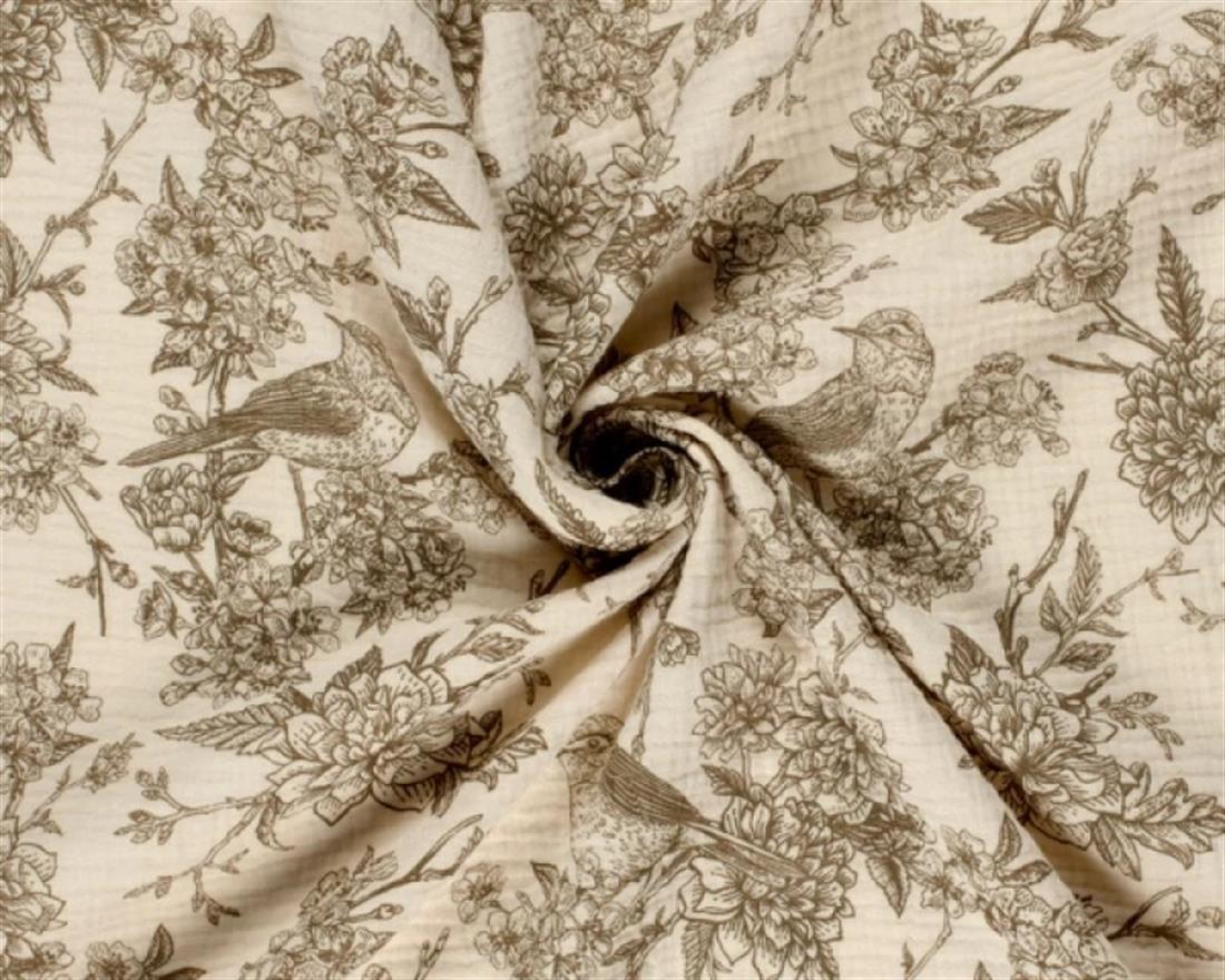 Premiume Printed Flora Fauna Muslin Gauze Fabrics
