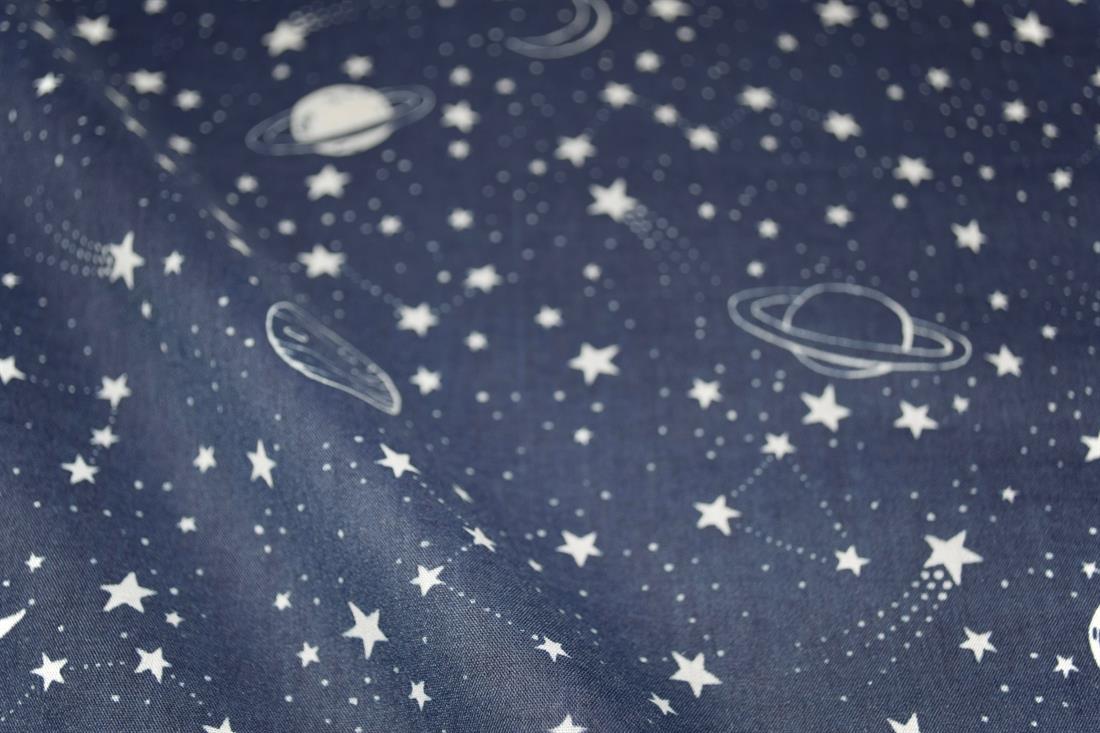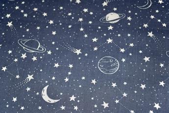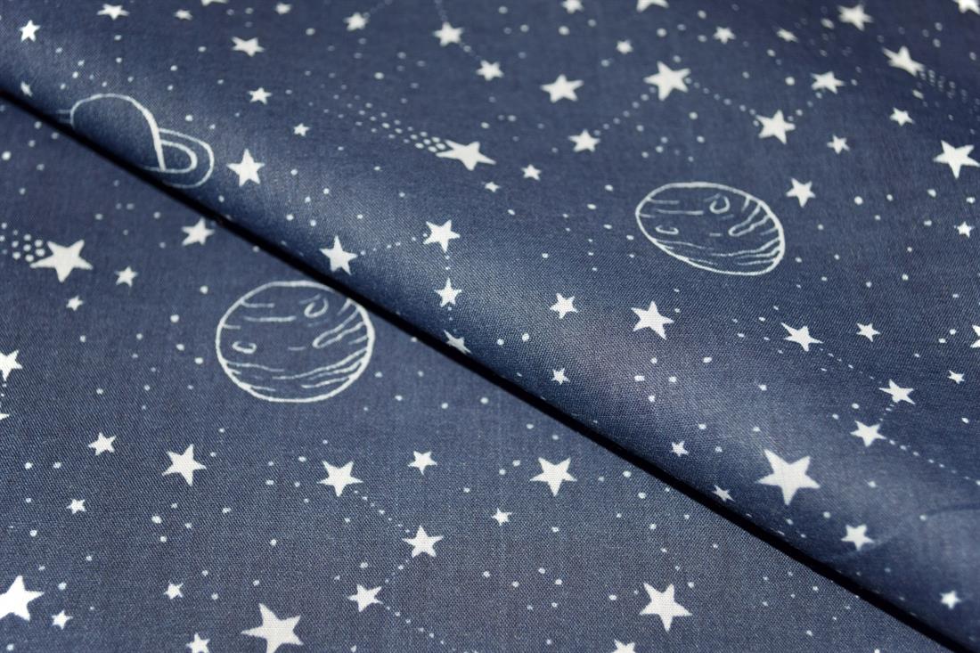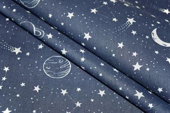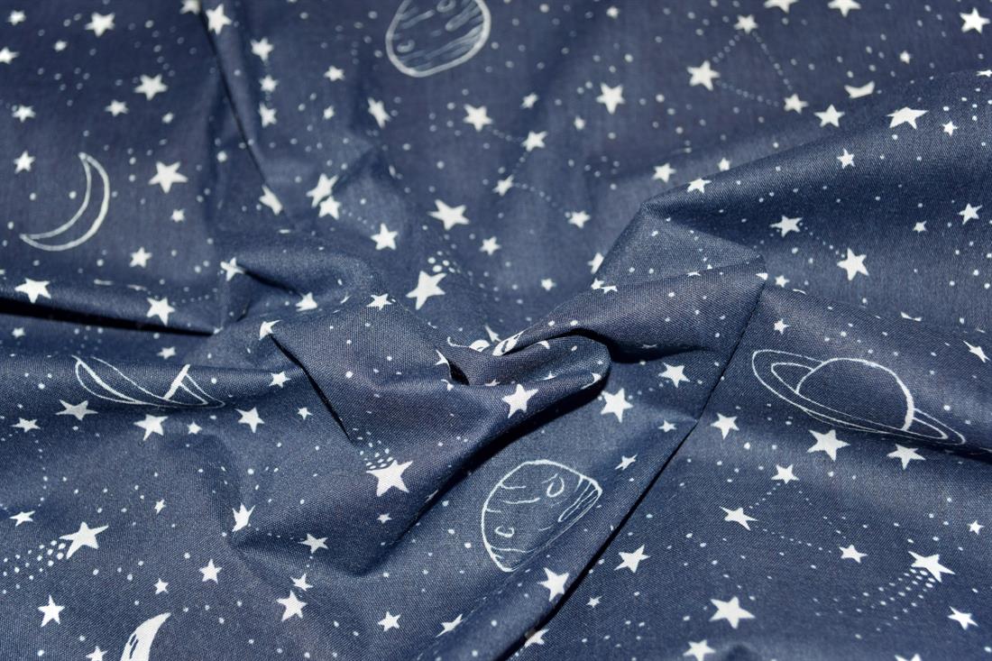 Stars & Planets Printed Polycotton Fabric, 80% Polyester and 20% Cotton, 112cm Wide, High Quality;