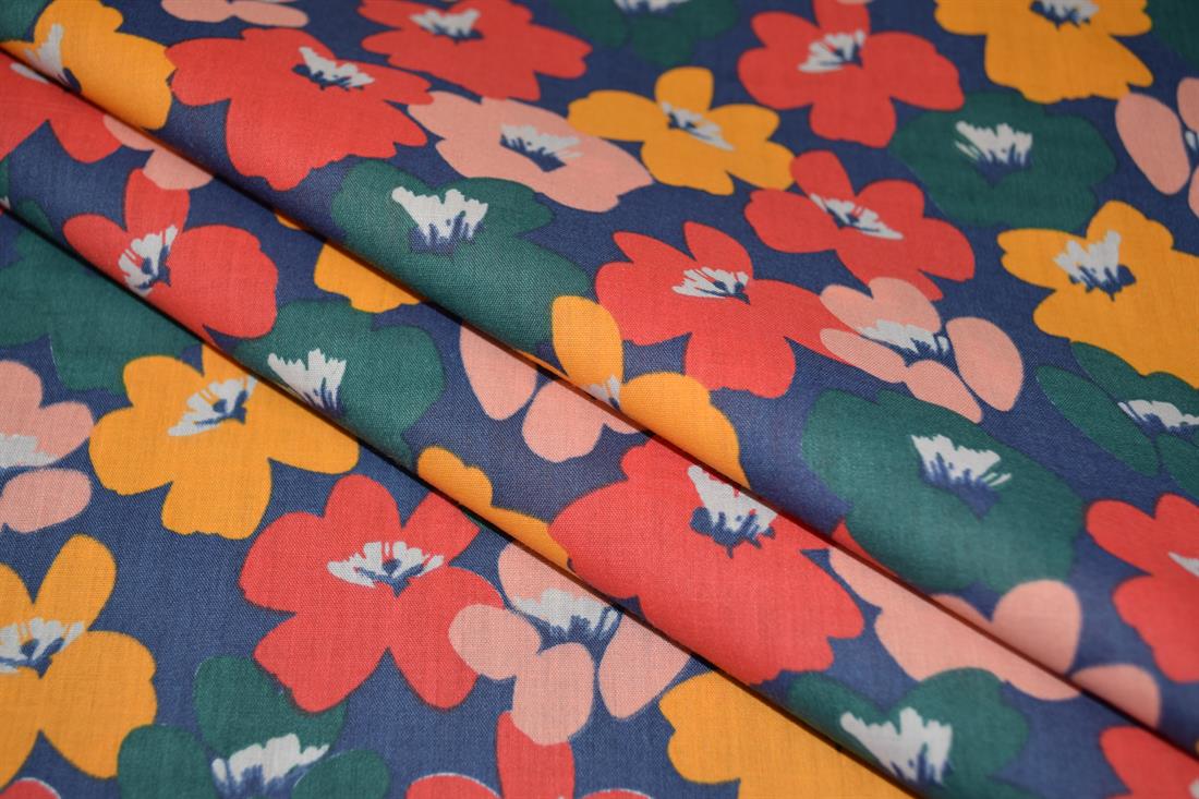 Flower Printed Polycotton Fabric, 80% Polyester and 20% Cotton, 112cm Wide, High Quality; Weight; 90gsm Our polycotton prints are made from a blend of polyester and cotton. This lightweight fabric is ideal for clothing, cushion-covers, bed sheets, tablecloths, napkins, face masks, crafts, and much more. Colours may slightly vary due to the lighting during the photo shooting or the monitor's display.