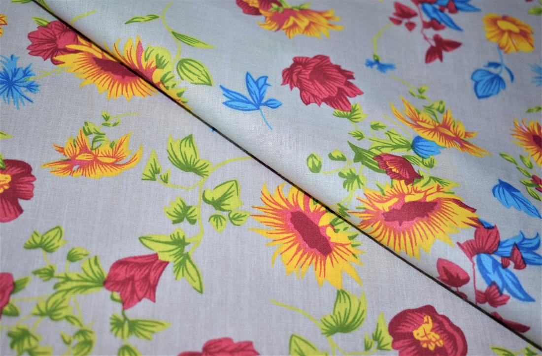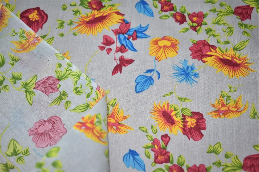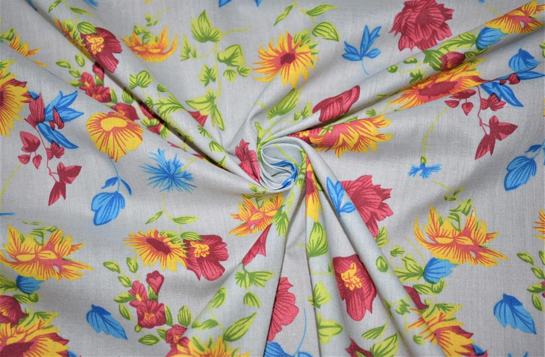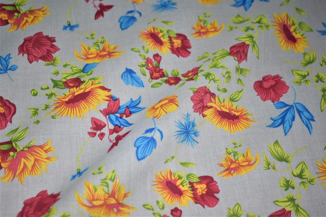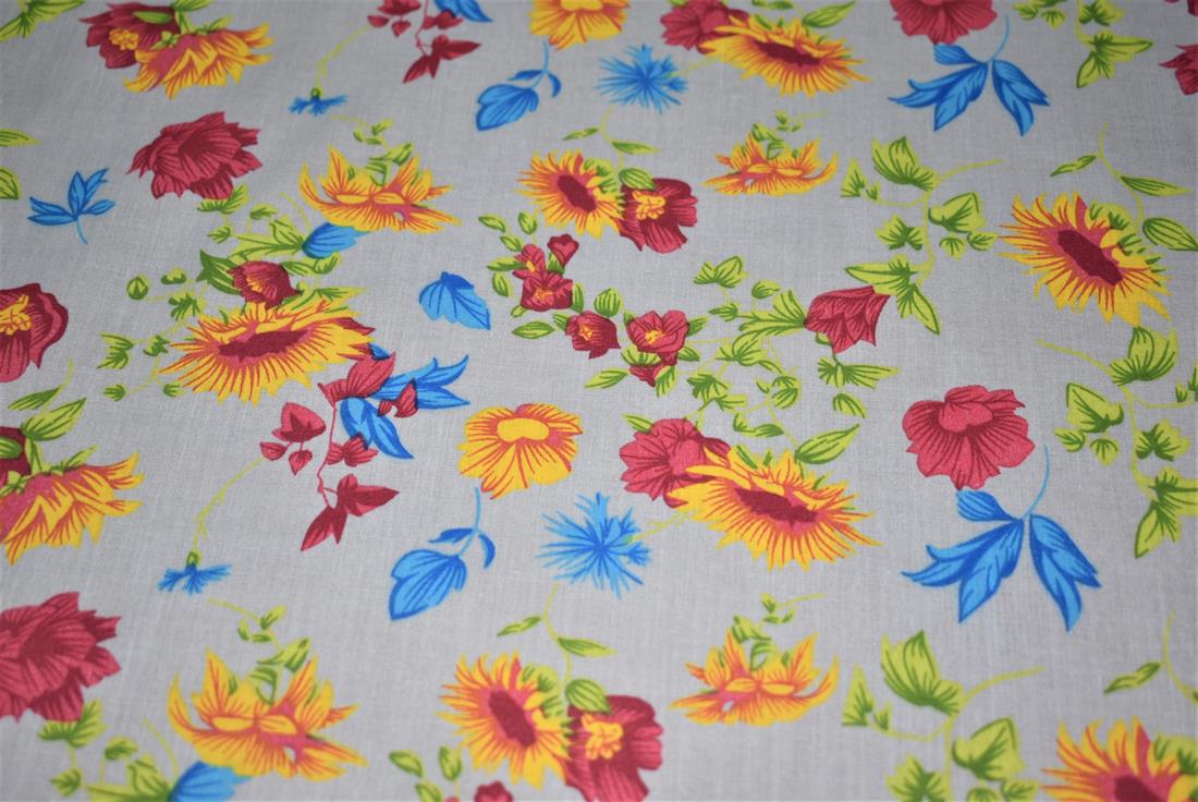 Country Flower - Printed Polycotton Fabric,Flower print 80% Polyester and 20% Cotton, 112cm Wide, High Quality; Weight; 90gsm Our polycotton prints are made from a blend of polyester and cotton. This lovely fabric is lightweight fabric is ideal for clothing, cushion-covers, bed sheets, tablecloths, napkins, face masks, crafts, and much more. Colours may slightly vary due to the lighting during the photo shooting or the monitor's display.Washing - 30 degrees celsius Colours may slightly vary due to the lighting during the photo