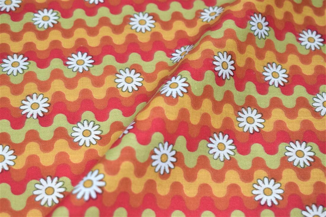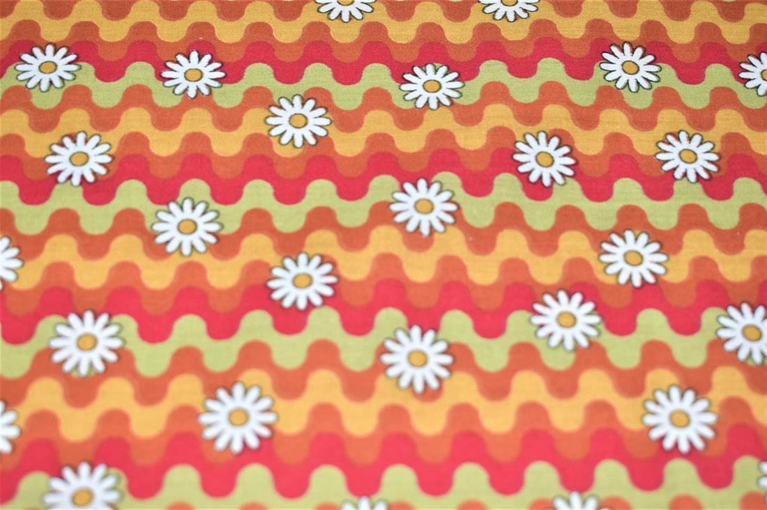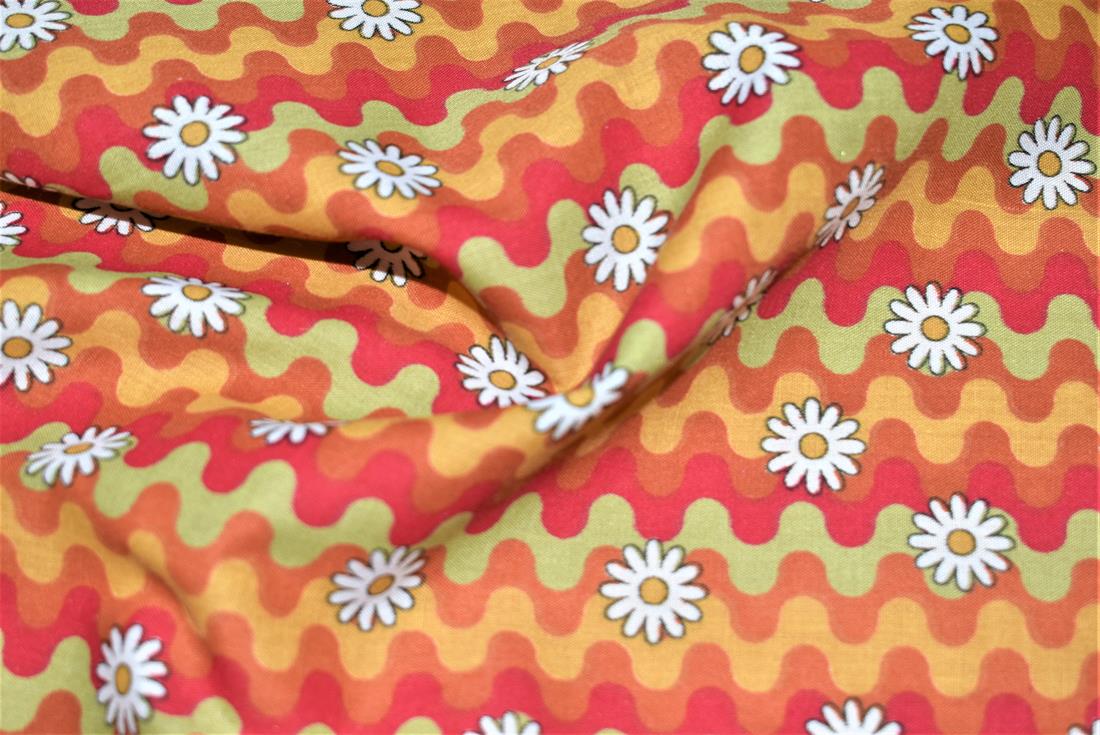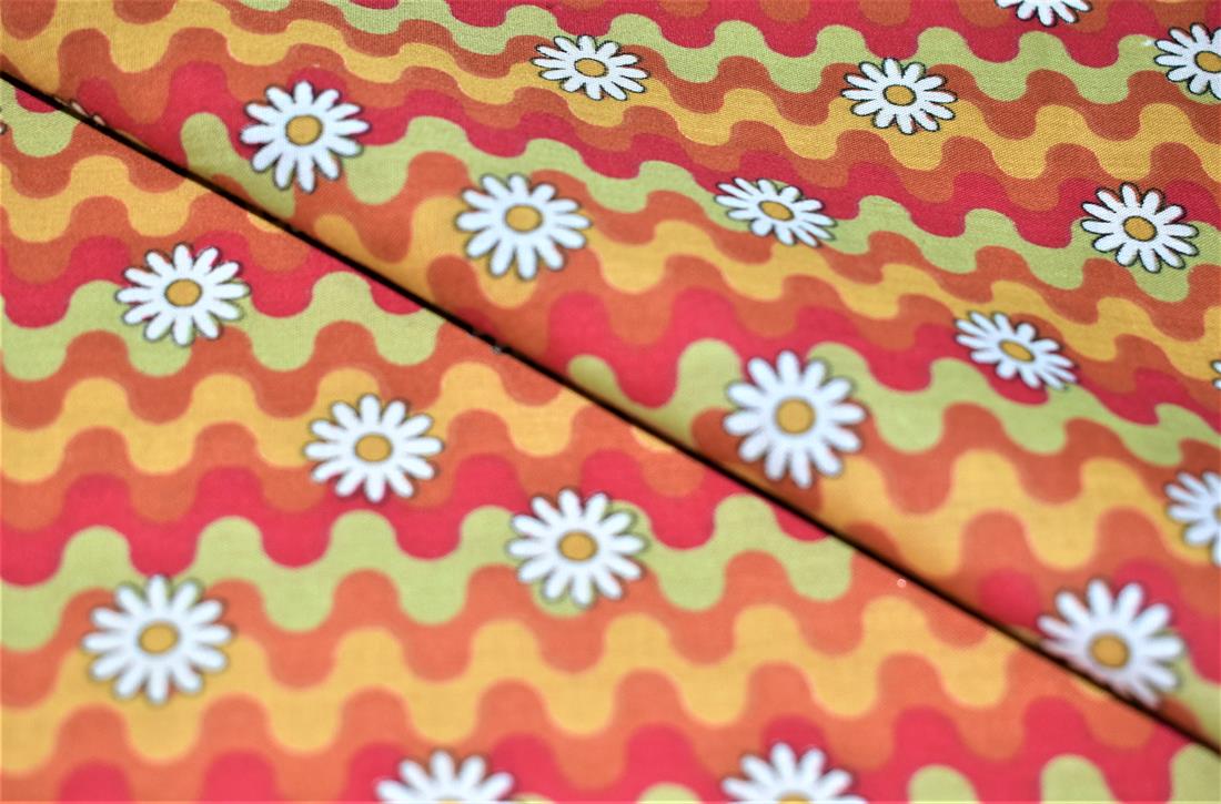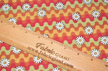 Featuring a 70's inspired wiggly daisy design that is made up of adorable daisies in the foreground and in the background is a fun, stylish, multi-coloured wiggly design. This fabric comes in three, on trend, colourways.