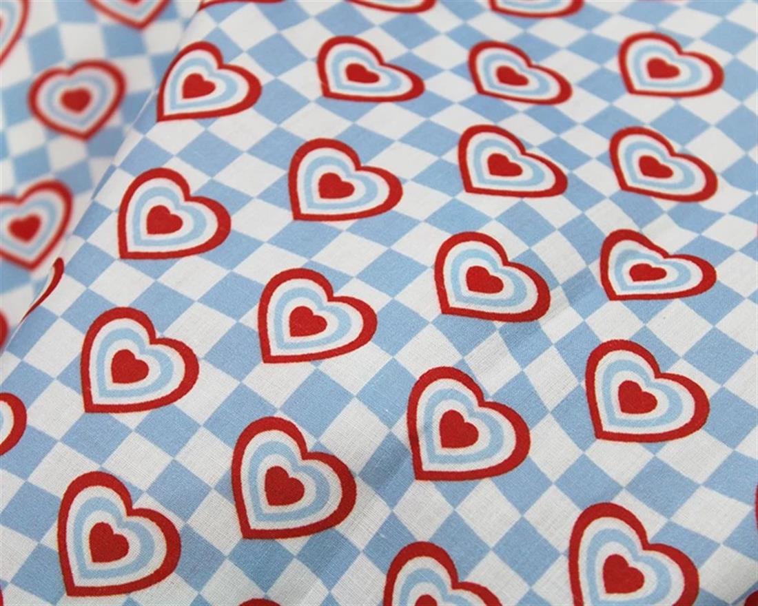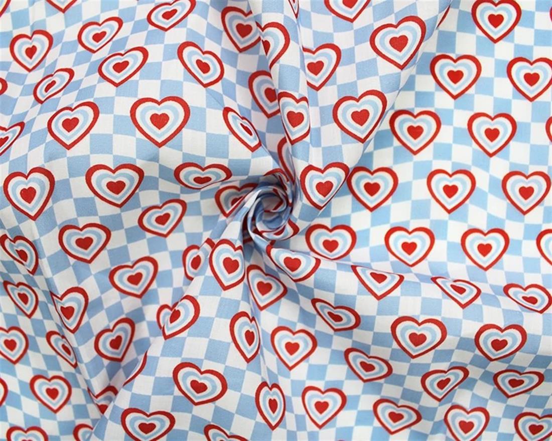 MP Digital Polycotton Check Hearts