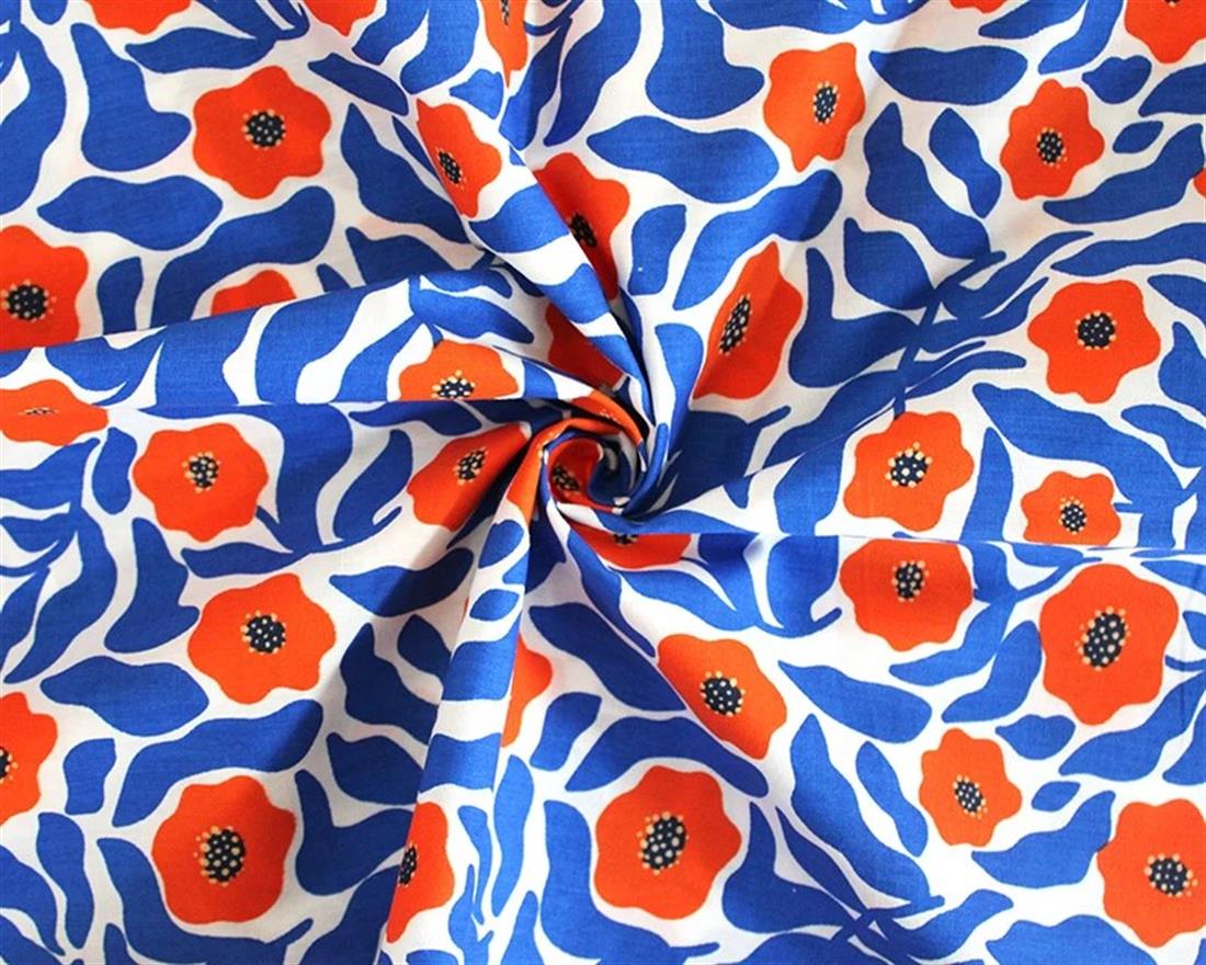 Mindy Polycotton Swirly Flowers is a vibrant fabric featuring delicate, swirling floral patterns on a durable and soft polycotton blend.