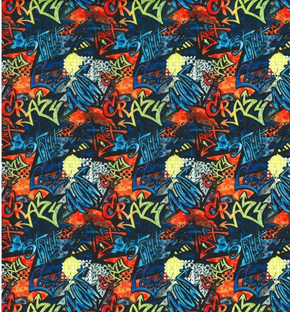 Premium Printed Polycotton Fabric Graffiti Words Print – 110cm Wide – Lightweight Craft Fabric