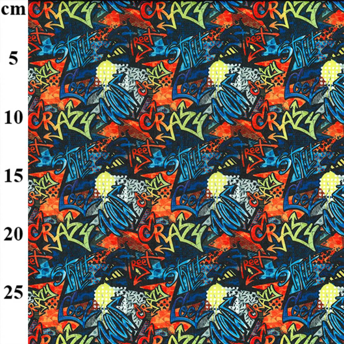 Bring an urban edge to your projects with this Polycotton Graffiti Words Fabric! Featuring bold street-style graffiti in vibrant colours with words like Crazy, Street, Cool, and Skill, this design adds energy and attitude to any make. Perfect for kids’ clothing, bags, crafts, and fun décor, it’s a standout print that inspires creativity.