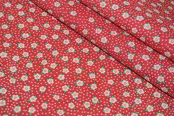 Red Ditsy Floral Printed Polycotton Fabric, 65% Polyester and 35% Cotton, 112cm Wide, High Quality;