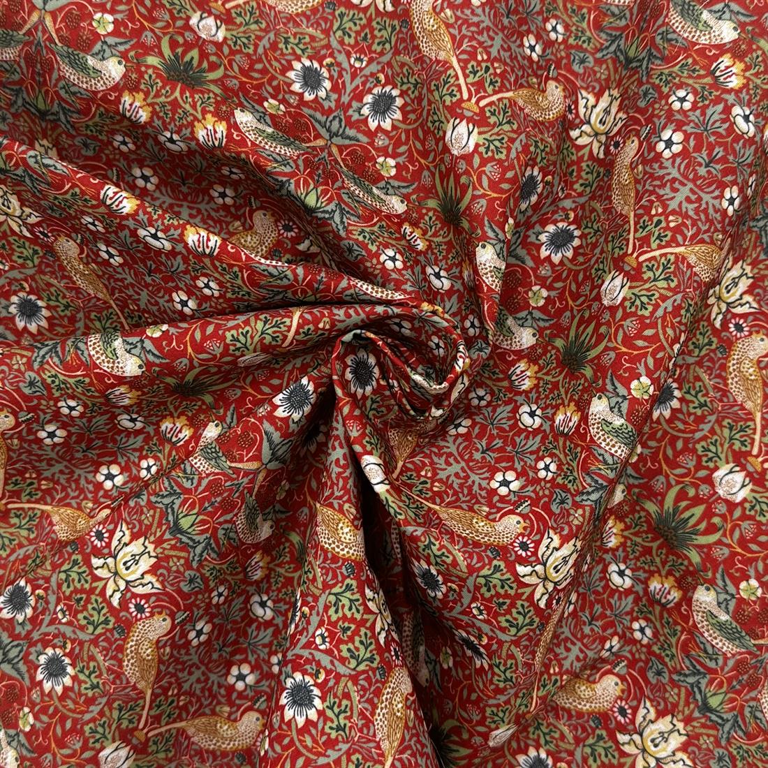 Premium Strawberry Thief Red Printed Polycotton Fabric