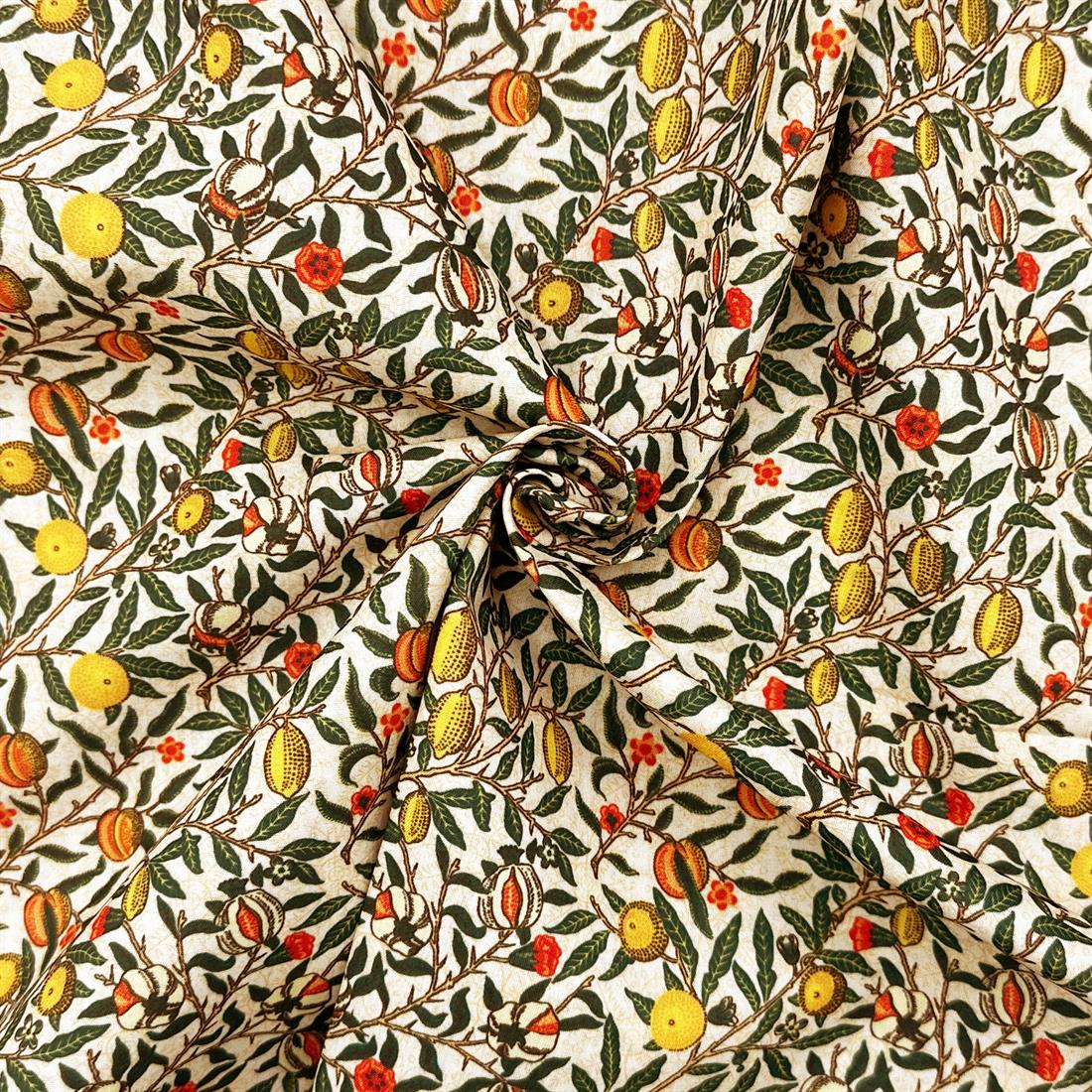 Premium Pomegranate Cream Printed Polycotton Fabric
