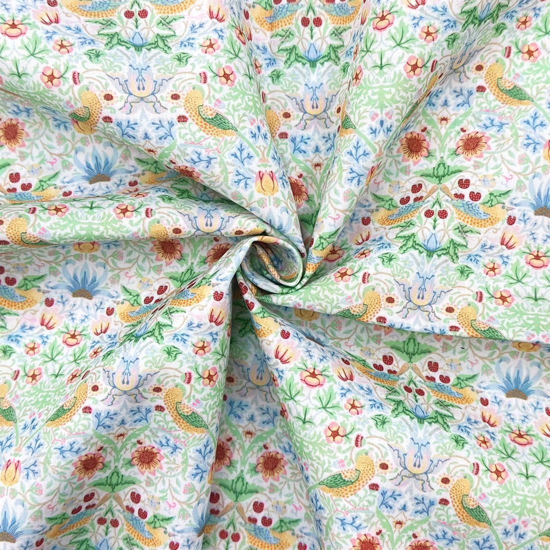 Premium Strawberry Thief Pastel Mint Printed Polycotton Fabric