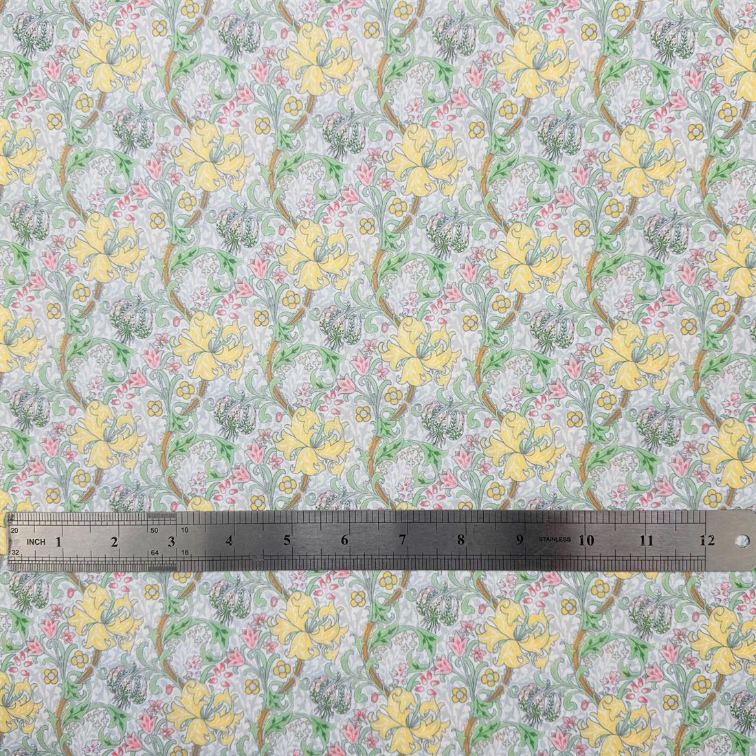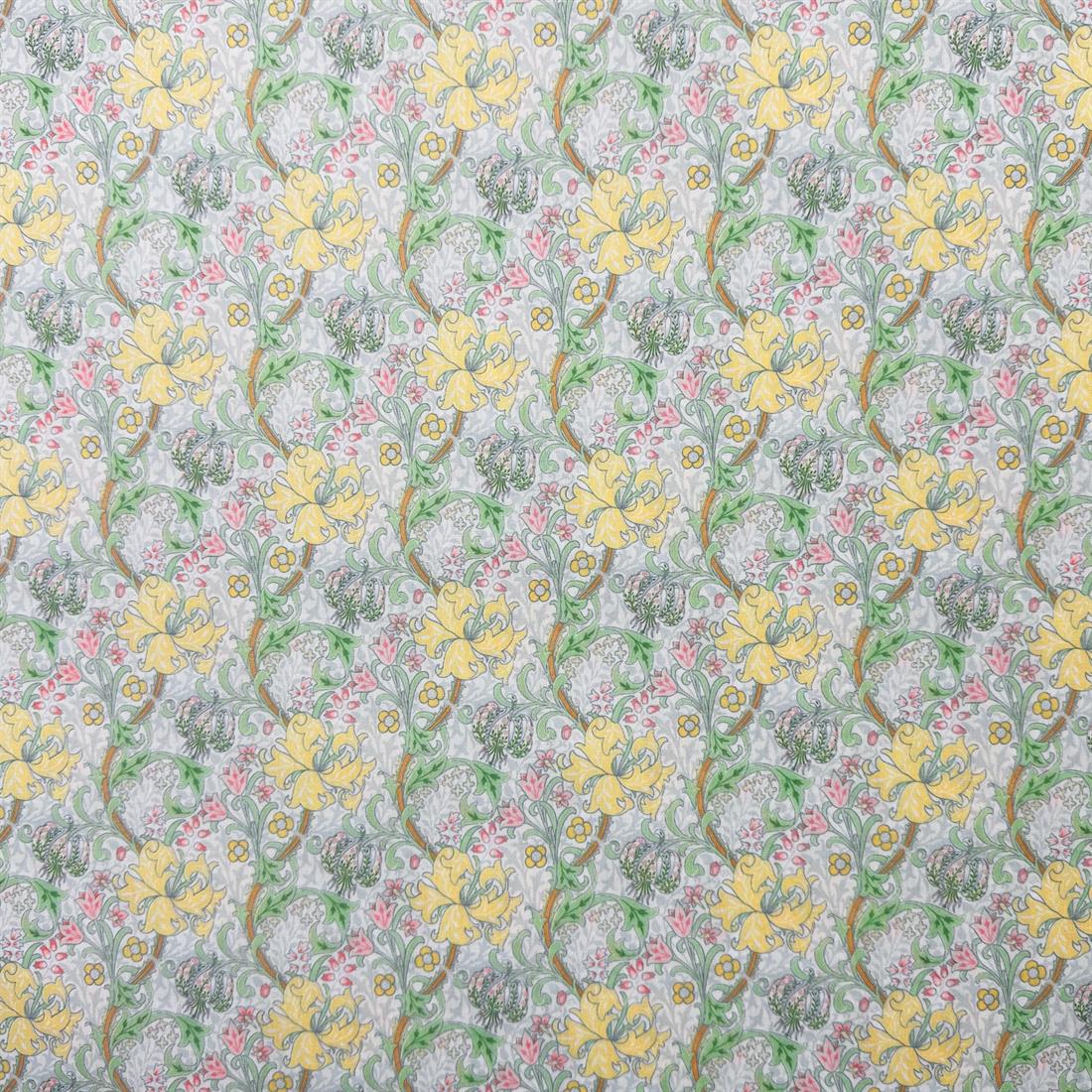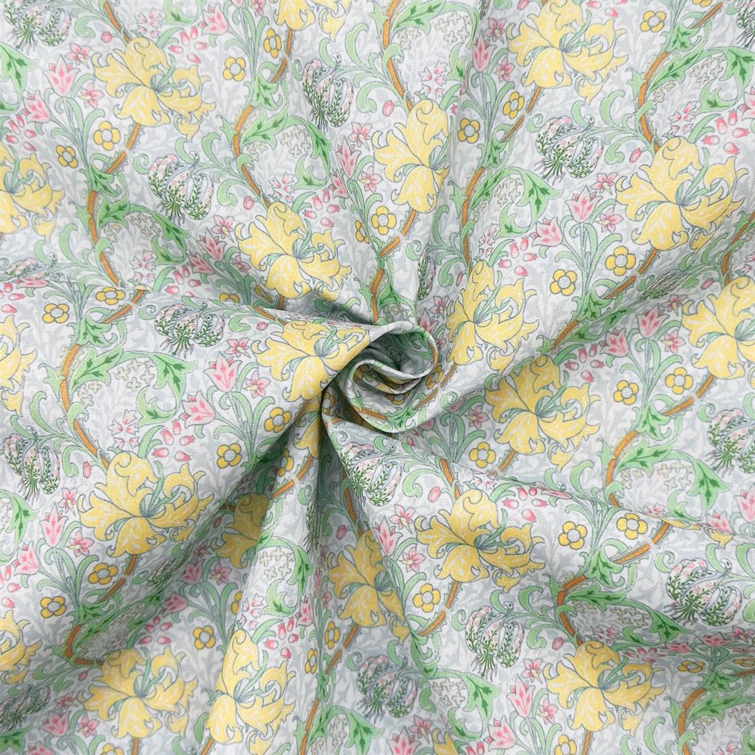 Premium Golden Lily Pastel Green Printed Polycotton Fabric