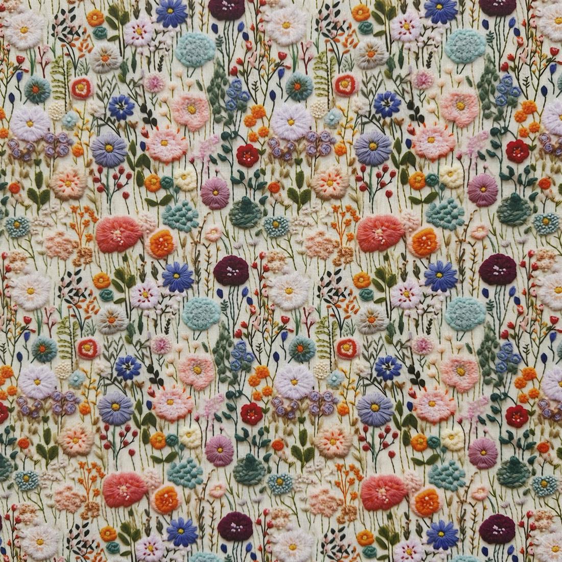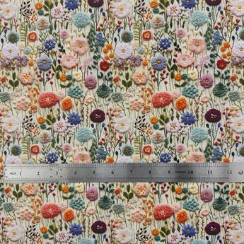 Premium 3D Spring Flowers Printed Polycotton Fabric