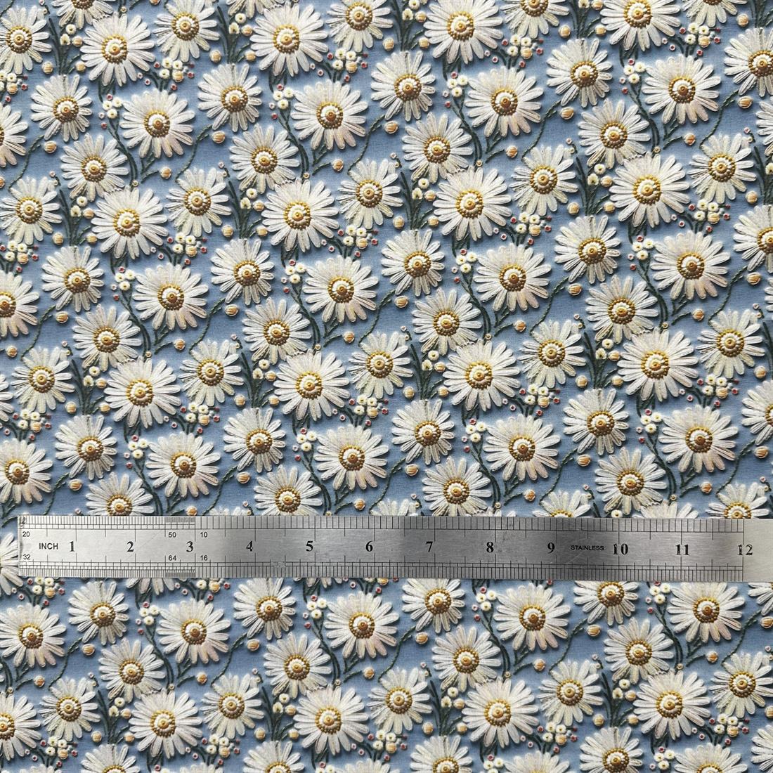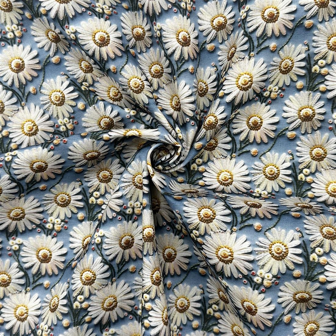 Premium 3D Daisies Printed Polycotton Fabric