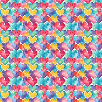 Premium Watercolour Hearts Printed Polycotton Fabric
