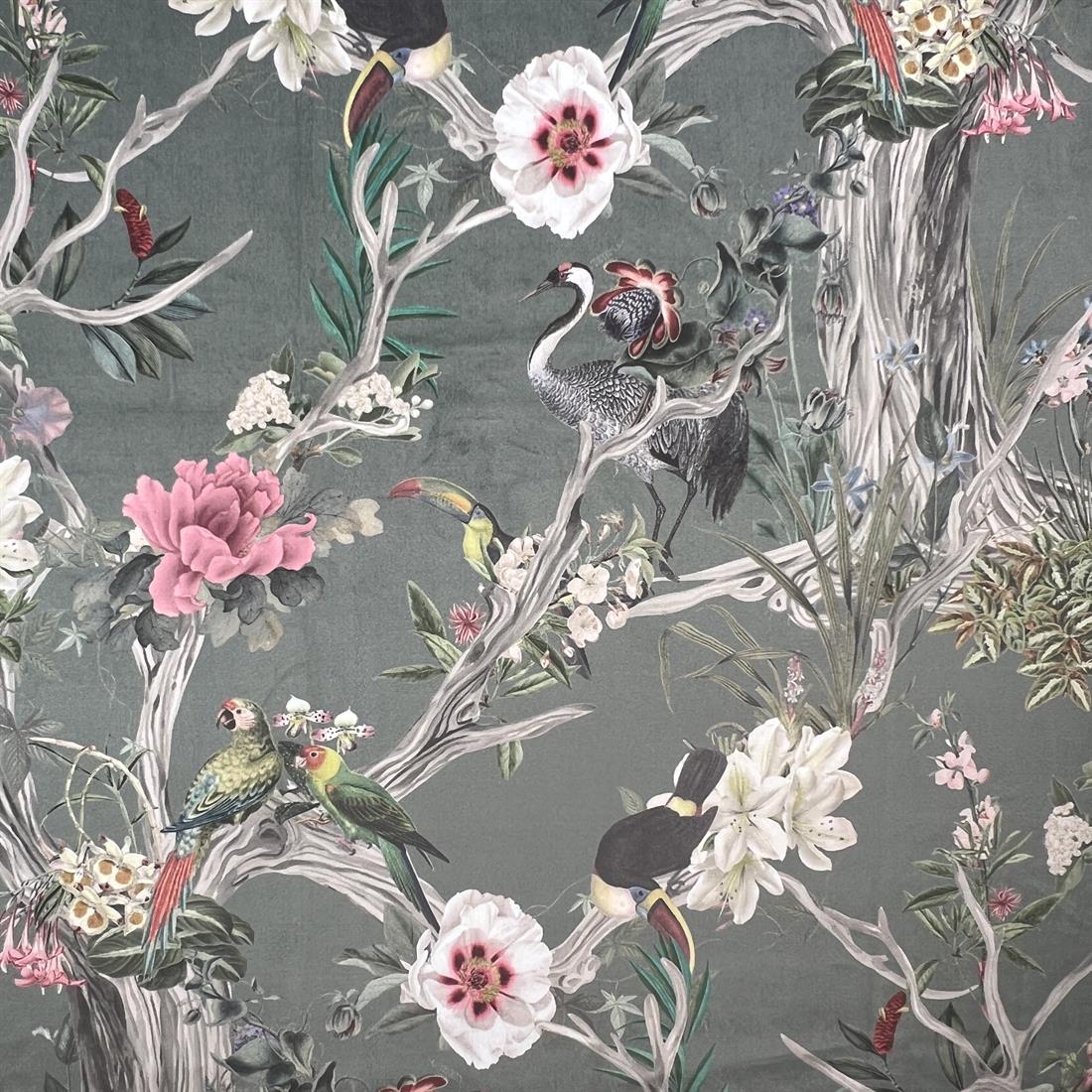 Chinoiserie Silver Grey - Luxury Digitally printed, soft & durable Velvet fabric with a plush finish It is supreme quality fabric, which would be ideal for a multitude of furnishing projects including Cushions.