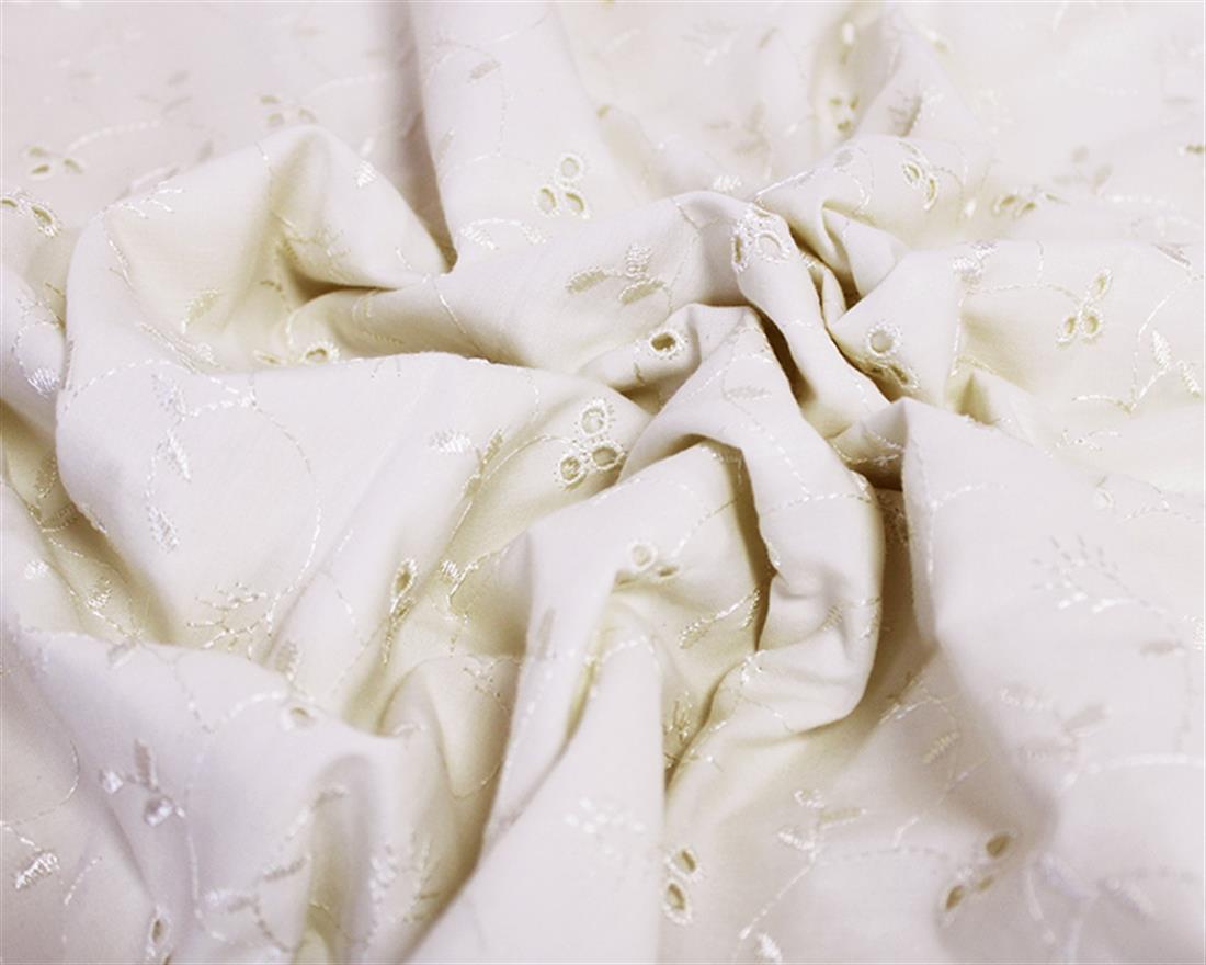 Made from 90% Polyester and 10% Cotton, our Cotton Anglaise boasts a soft and breathable texture,