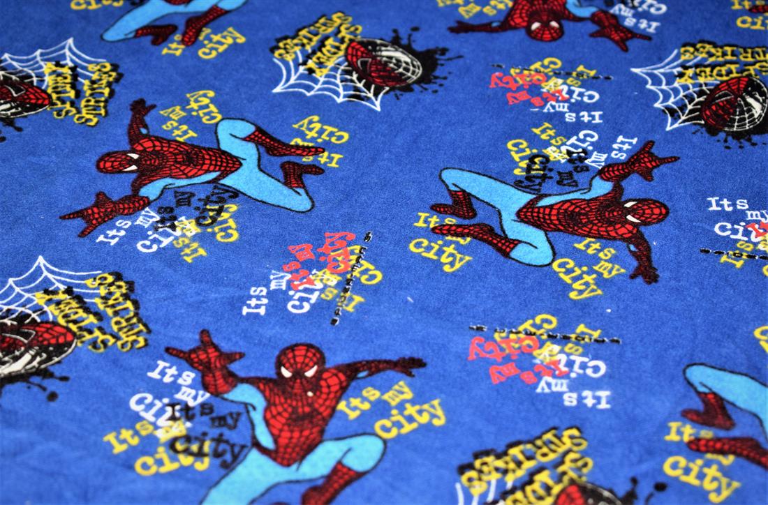 Printed Brush Flannel 100% Cotton, Spider Man Print Design,High Quality, 110 cm, High Quality