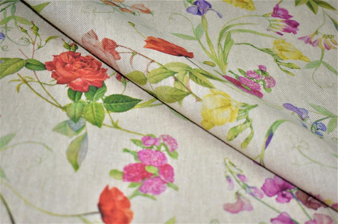 Classic Floral - Printed Digital Canvas Fabric, Cotton Rich Linen Look,