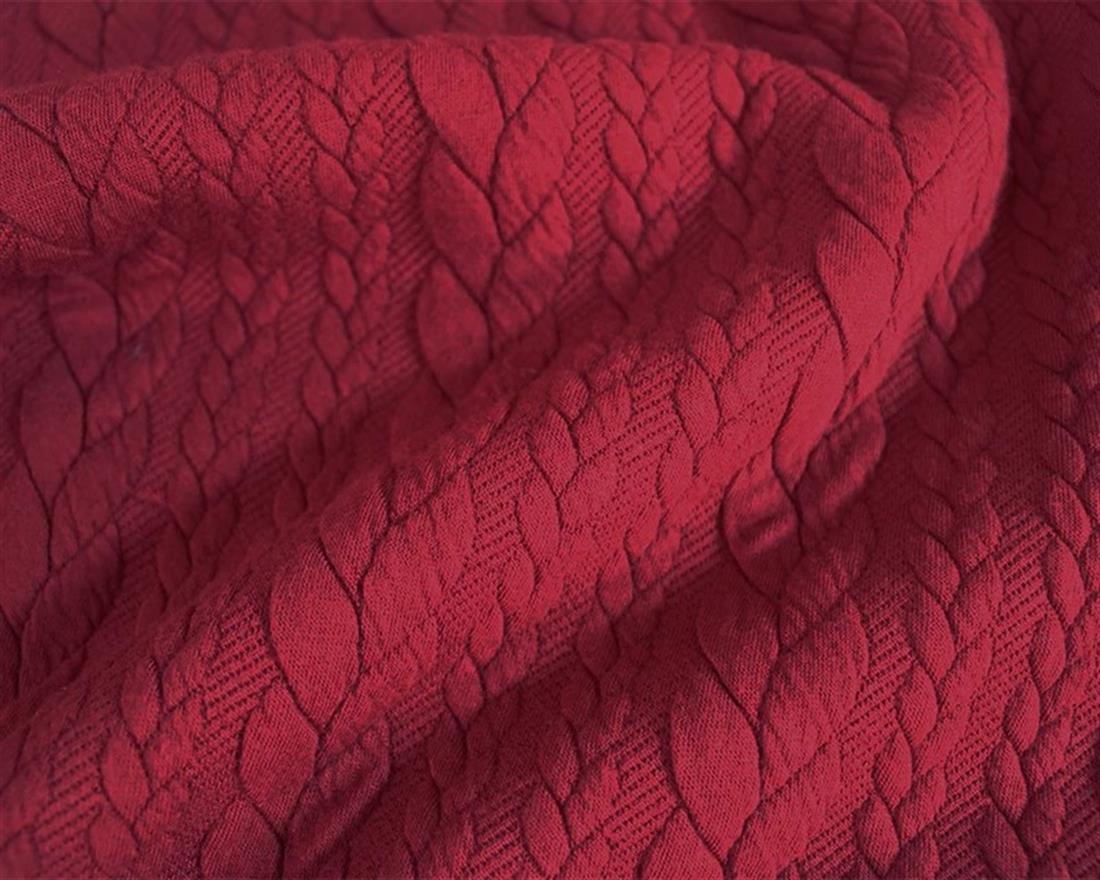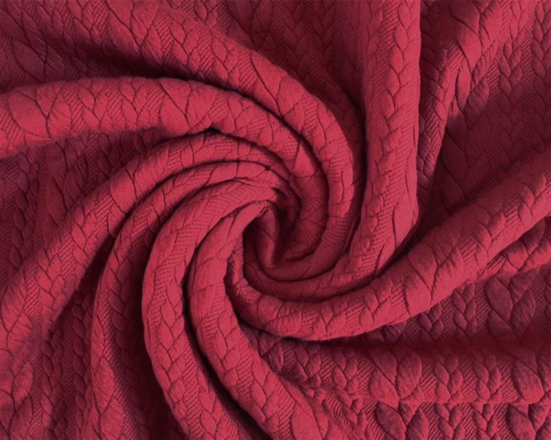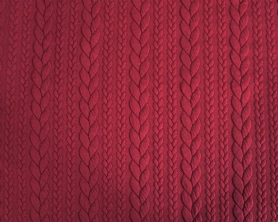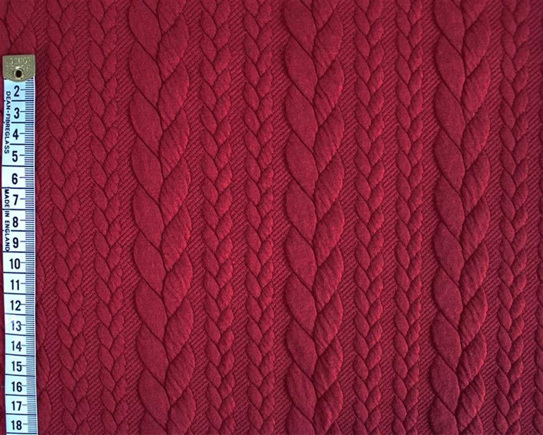 Cable Knit fabric is a double knit fabric. The wales in this fabric have a rope-like appearance, where they appear plaited.