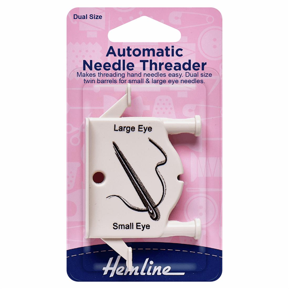 Auto needle threader makes threading all your hand needles a breeze. Dual size means it is suitable for both small and large eye hand needles. Full instructions provided on packaging.