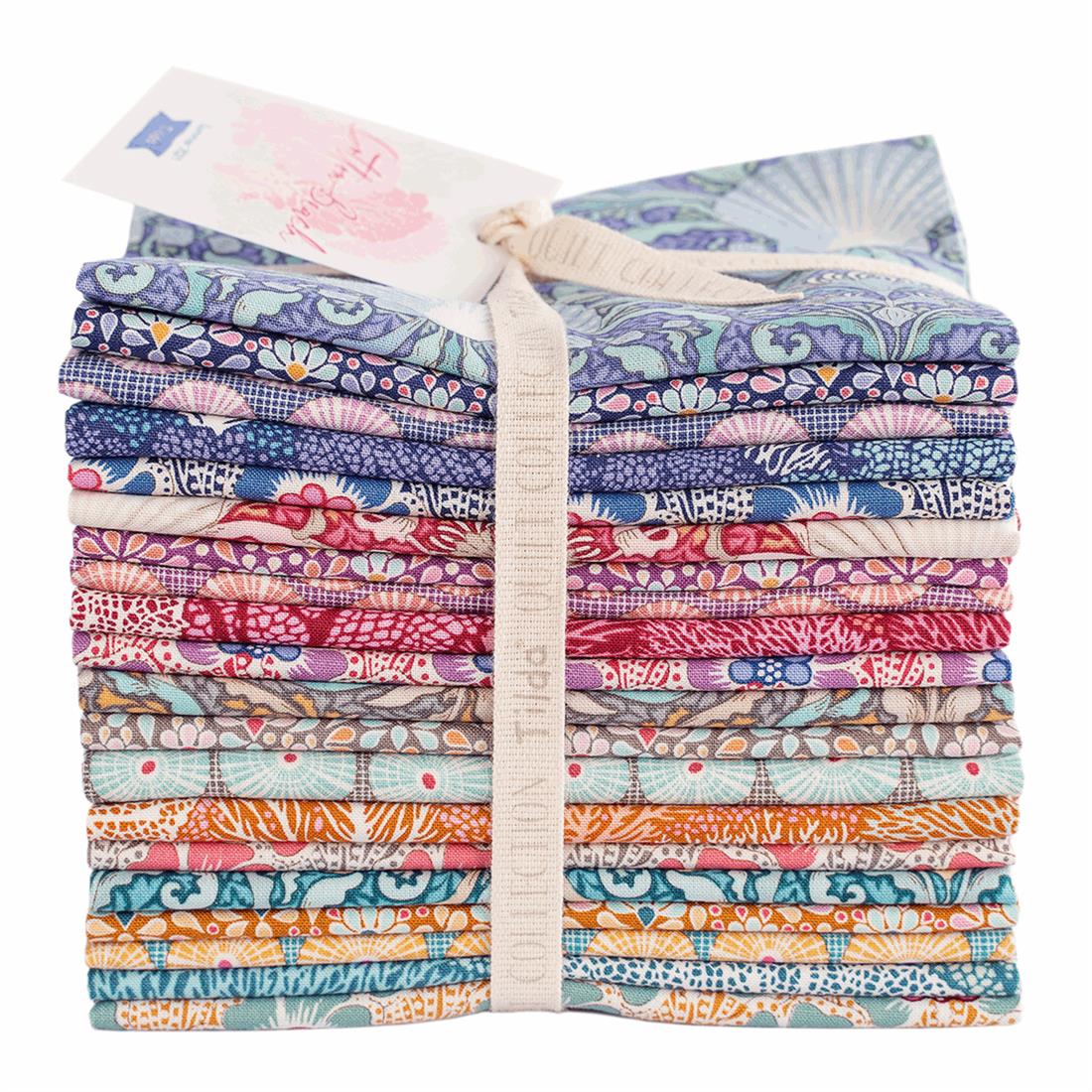 Cotton Beach felt like the perfect name for the coastal cotton fabric collection. Shells, coral reefs and sea anemones are some of the motifs that inspired the mixed style designs.
