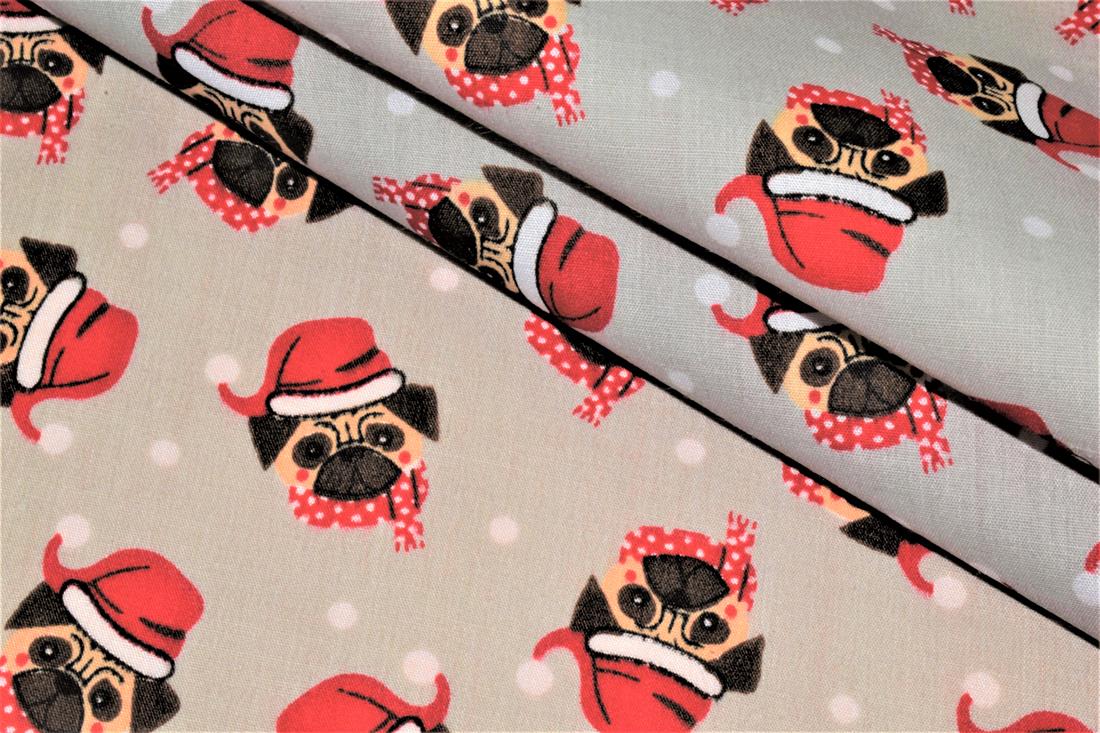 Santa Hat Pug Polycotton Fabric, 65% Polyester and 35% Cotton, 112cm Wide, High Quality;