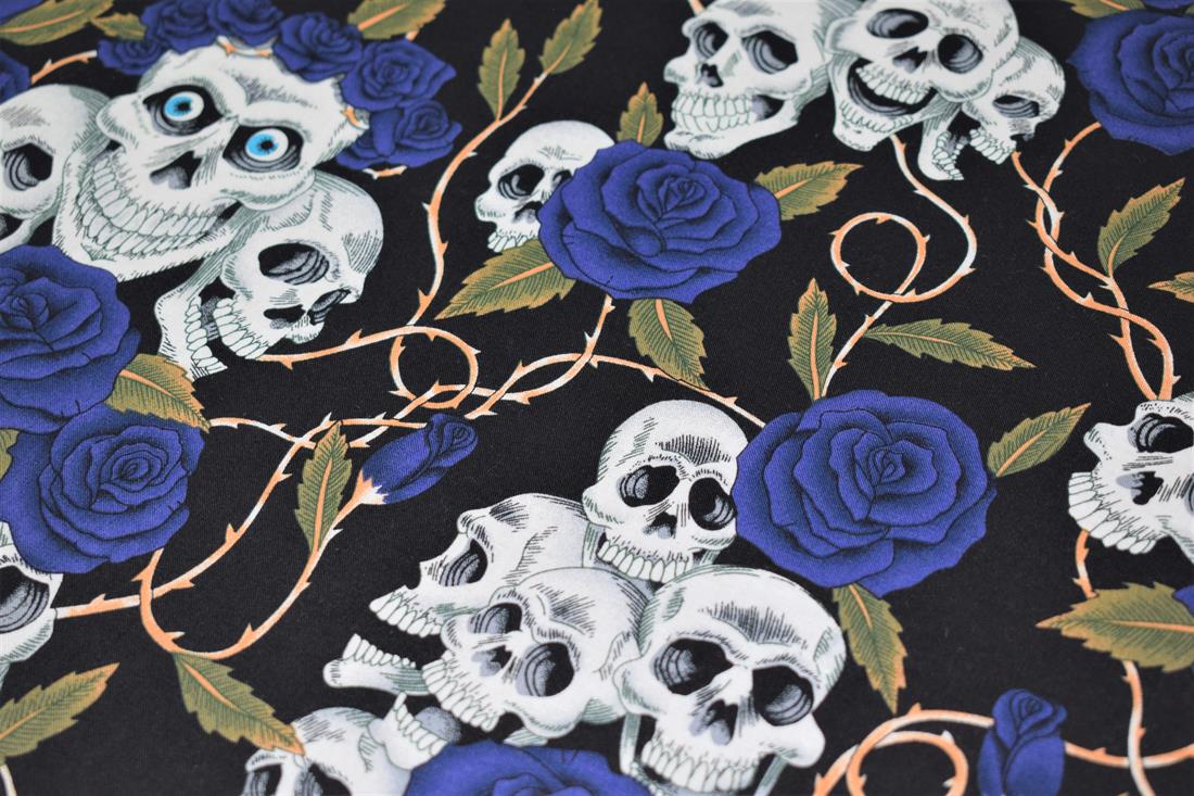 Skulls Roses 100% Halloween Cotton Fabric, 137cm Wide, High Quality; This unique fabric is ideal for dressmaking, table runners, cushion-covers, quilting, patchwork, and for craft projects. Colours may slightly vary due to the lighting during the photo shooting or the monitor's display.